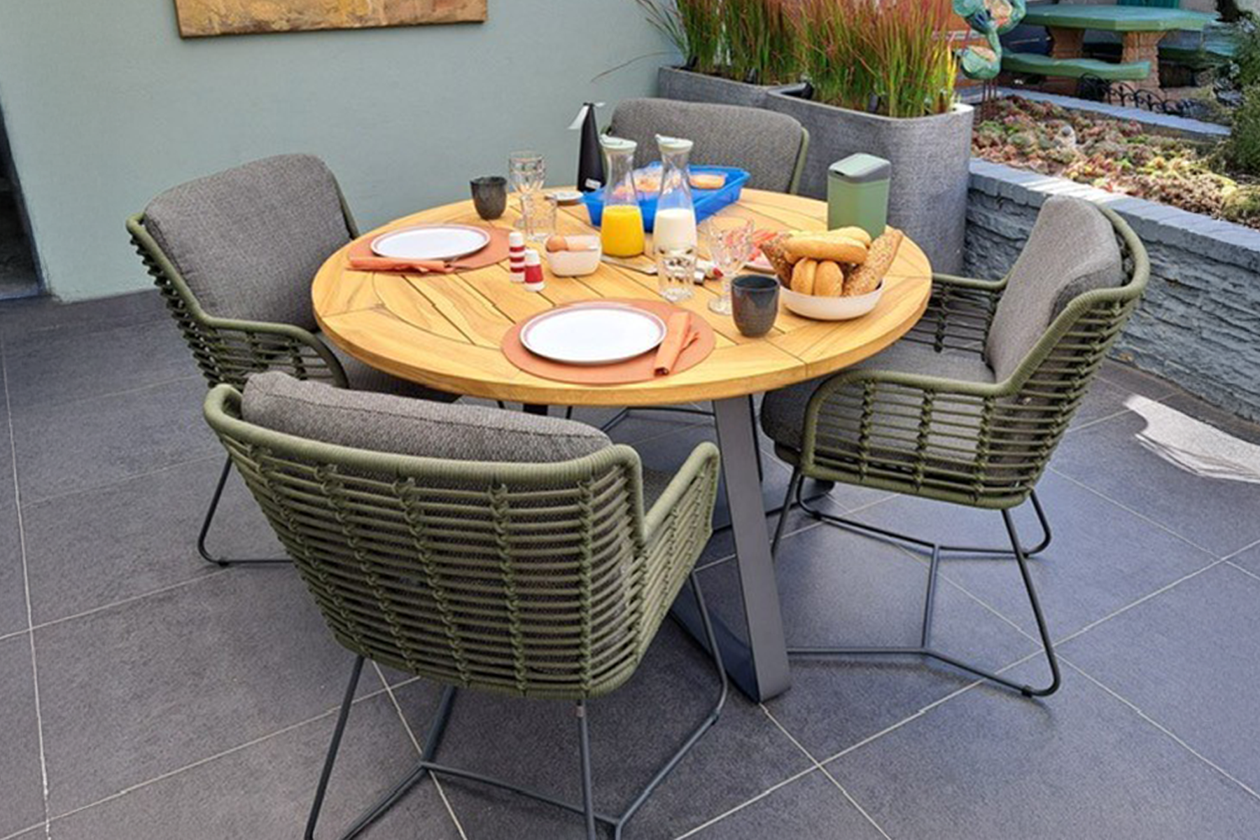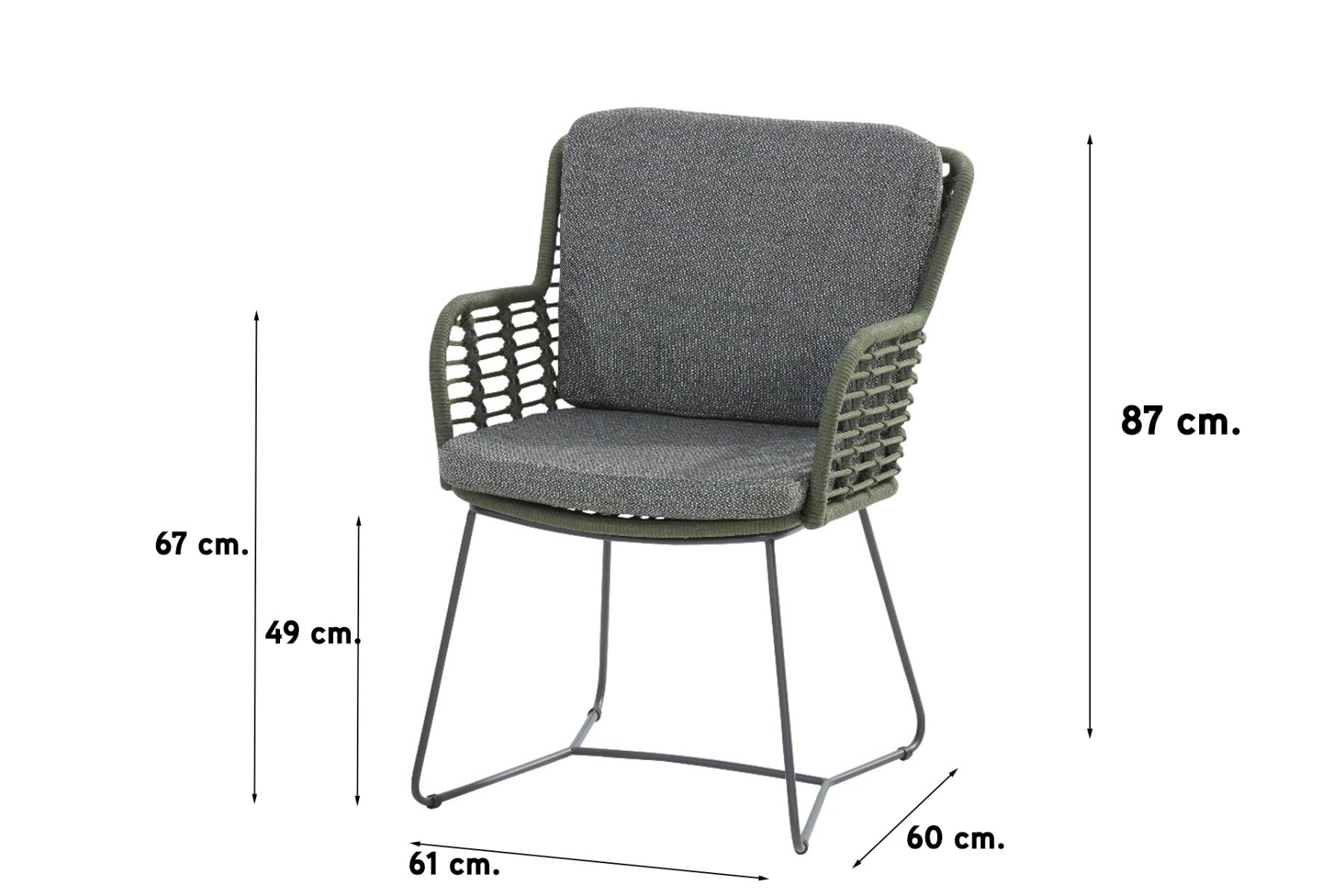 De Fabrice tuinstoel heeft niet alleen flair, maar ook uitstekend zitcomfort. De weerbestendige kussens, rope en het RVS frame zijn de hoogwaardige materialen welke ervoor zorgen dat je jaren plezier van de stoelen zult hebben. Naast de groene kleur is de stoel ook leverbaar in het antraciet. Hoe stoer is dat?