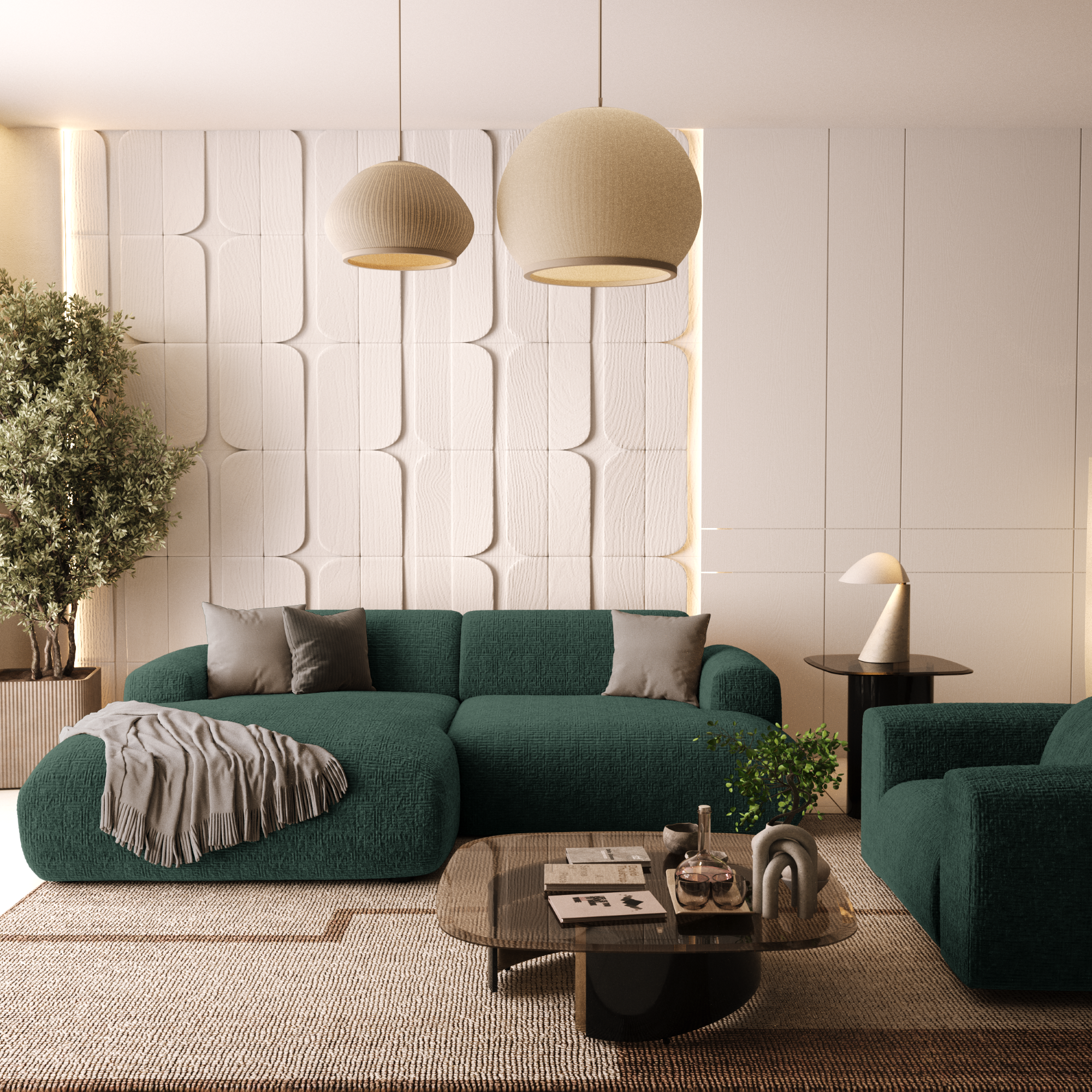 4-zits hoekbank links in fluweel met smaragdgroen patroon 266cm