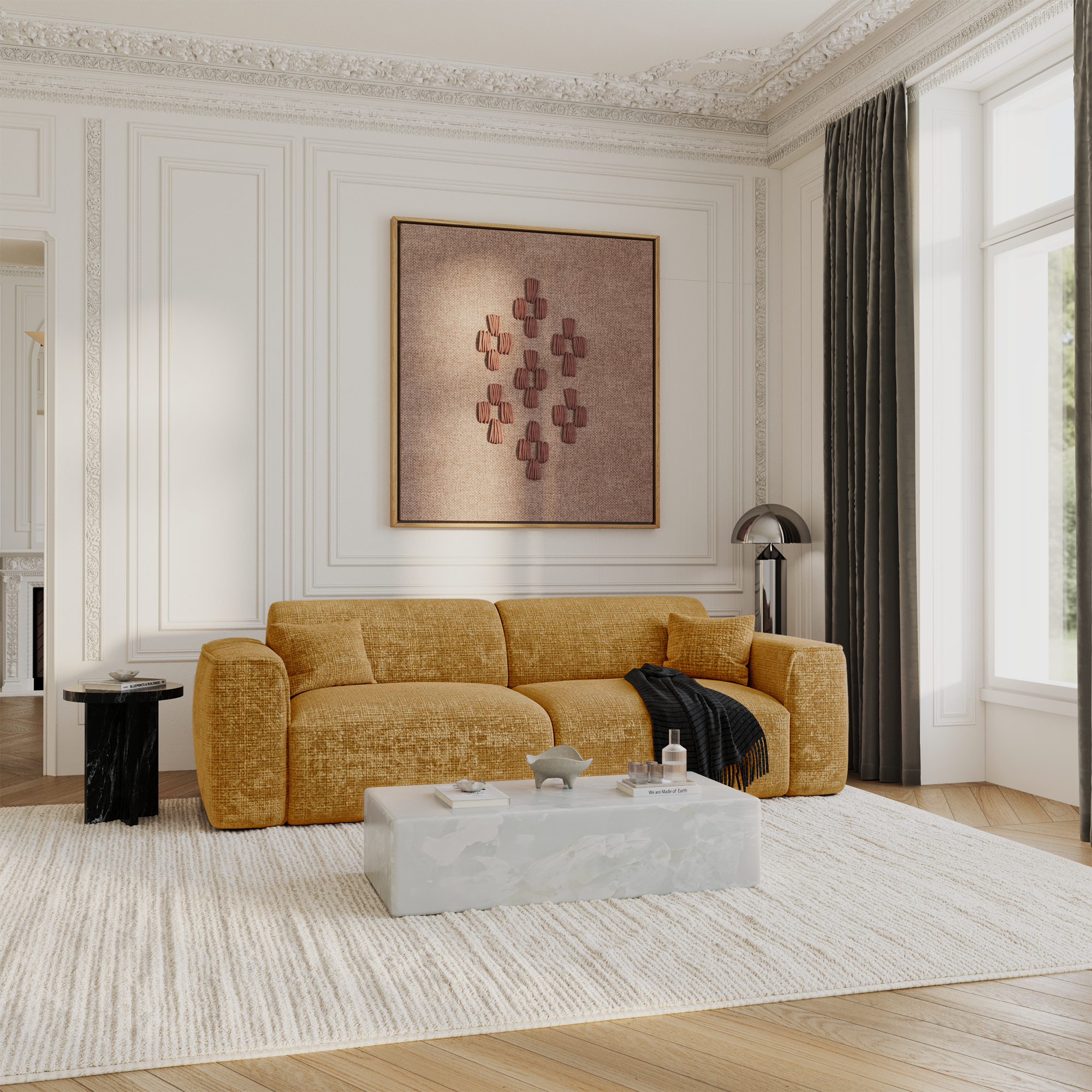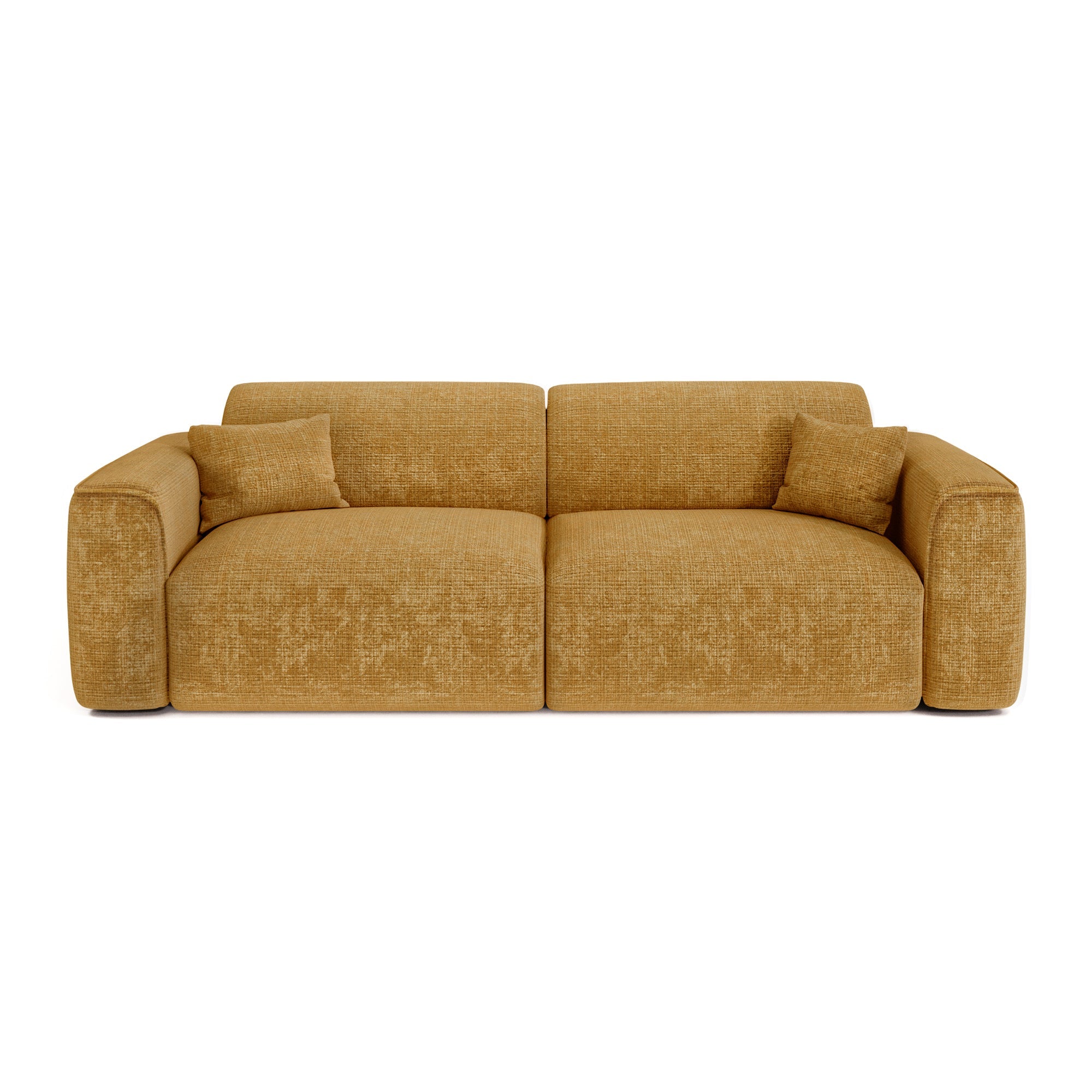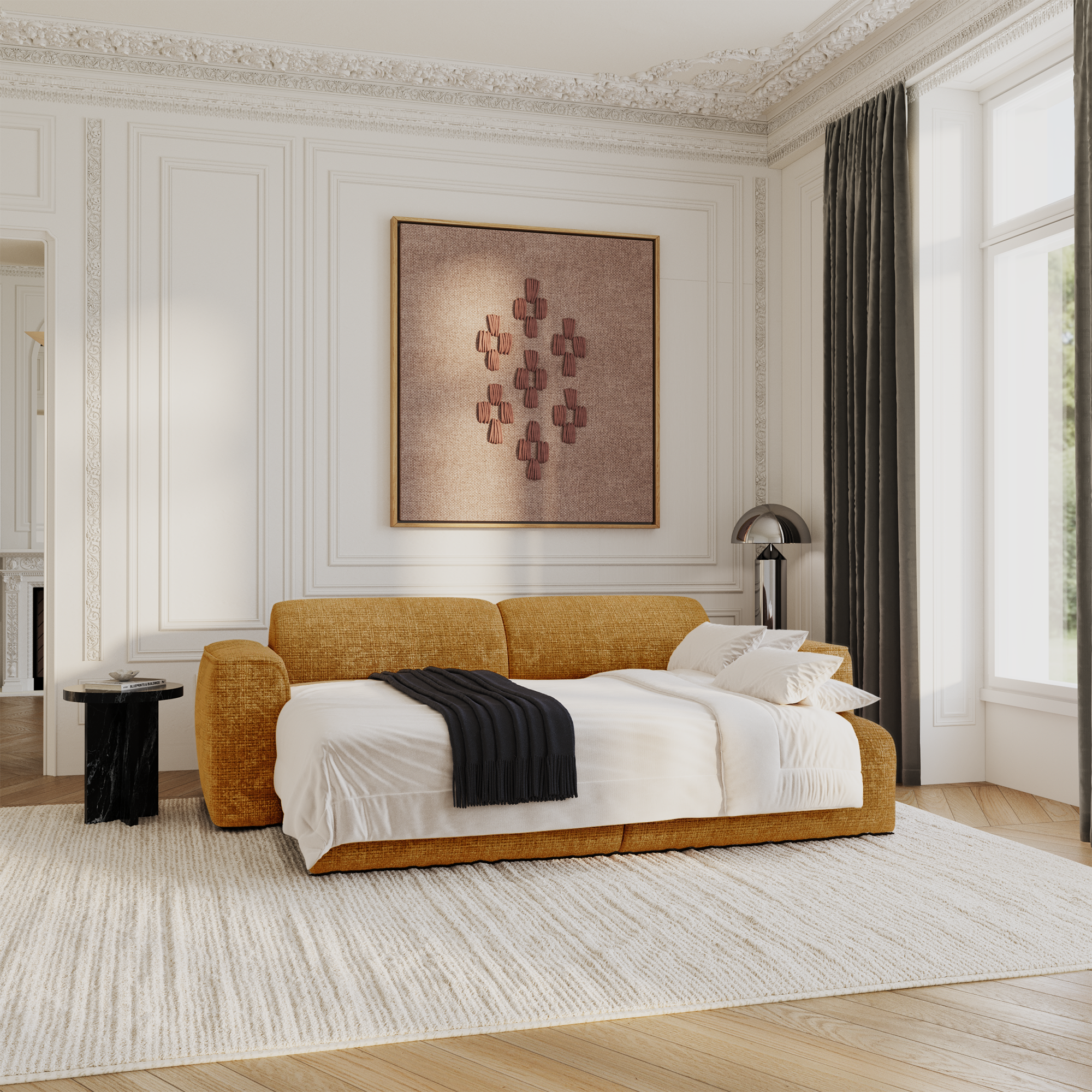 4-zits slaapbank in mosterdkleurig fluweel met reliëf