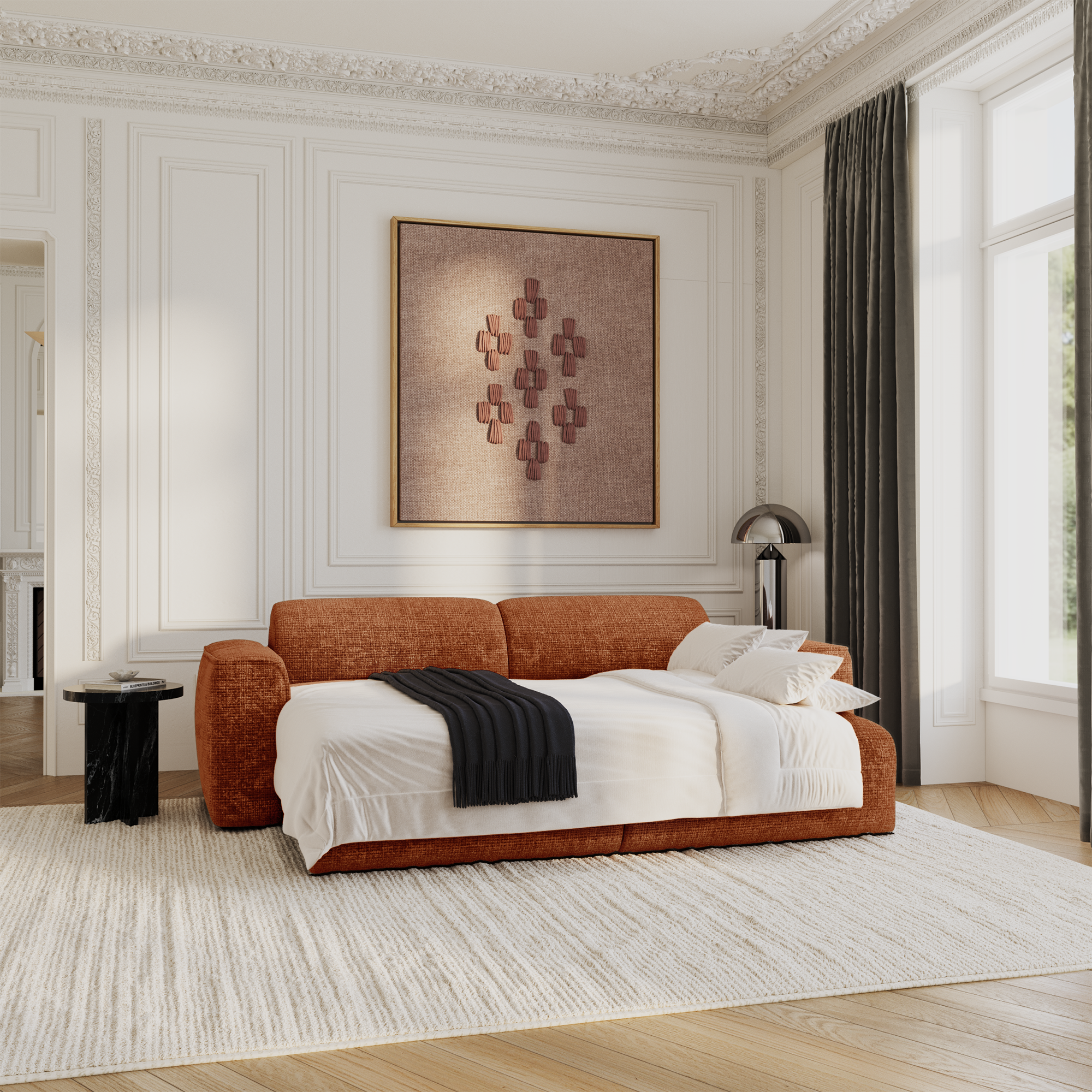 Richt de camera van je mobiele telefoon of tablet op de QR-code. Klik de link aan die in beeld verschijnt en het product wordt virtueel in je eigen huis geplaatst. Zo weet je zeker of het bij je past.
