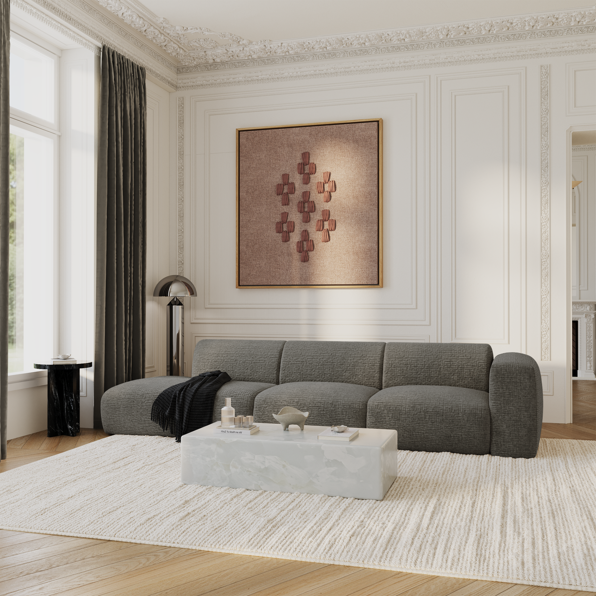 5-zits rechte bank in grijs fluweel met patroon, 310 cm