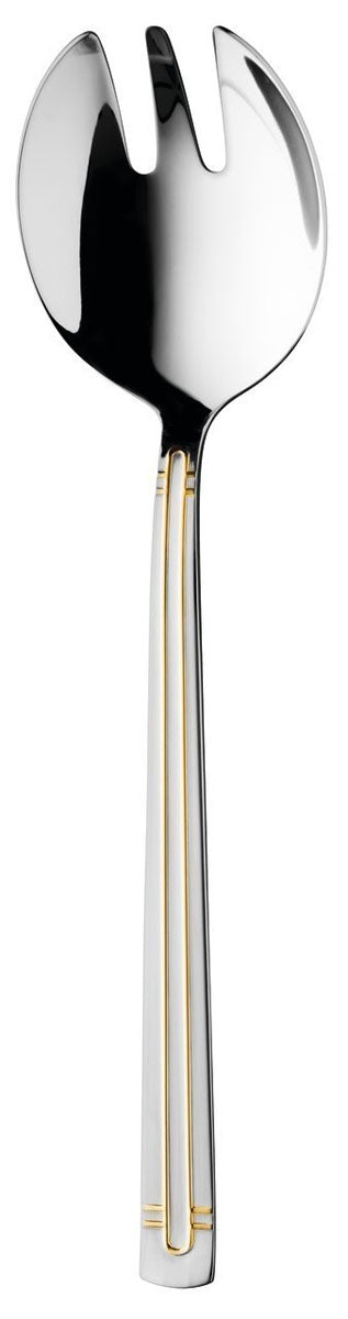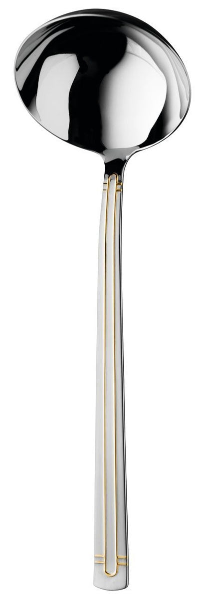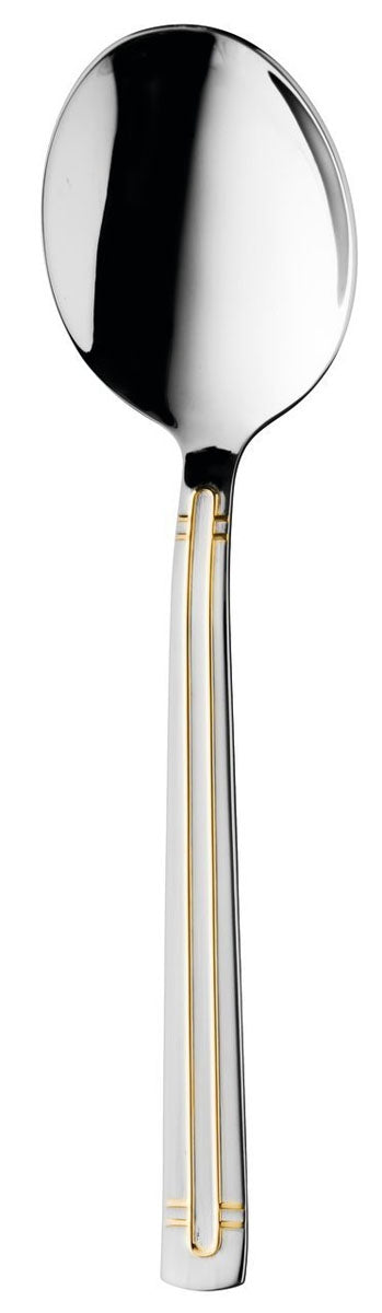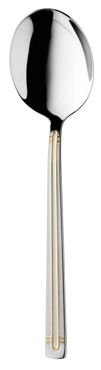Je bestek stijlvol aanvullen? Dan heb je de uitgebreide 72-delige Heritage bestekset nodig. Deze set heeft alles wat je in de keuken nodig hebt met onder andere 12 vorken, 12 messen, 12 lepels, 12 cakevorkjes en 12 koffielepels. Verder bevat de set twee serveerlepels, een saladevork, een saladelepel, een soeplepel, een sauslepel en twee vleesvorken. De roomlepel, taartschep, suikerlepel en suikertang maken de volledige set compleet. Het bestek is gemaakt van hoogwaardig 18/10 roestvrij staal en elk stuk is voorzien van een stevig, comfortabel handvat met gouden lijnen, waardoor je zowel functioneel als stijlvol bestek hebt. Na gebruik is elk stuk makkelijk schoon te maken.