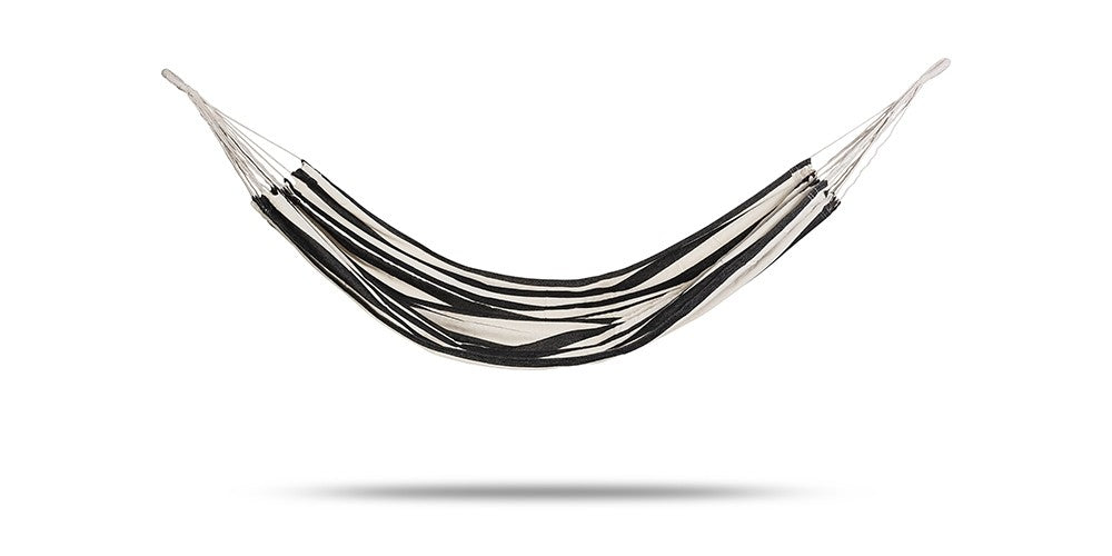 Genieten van de zonsondergang, een boek lezen, cocktails drinken of lekker een dutje doen in de tuin: de 909 Outdoor hangmat zwart/wit gestreept is perfect voor al jouw ontspannen momenten. De hangmat is gemaakt van 60% katoen en 40% polyester. De hangmat is 2 meter lang en 1 meter breed (exclusief touwen). Hangmat inclusief bevestigingsmateriaal