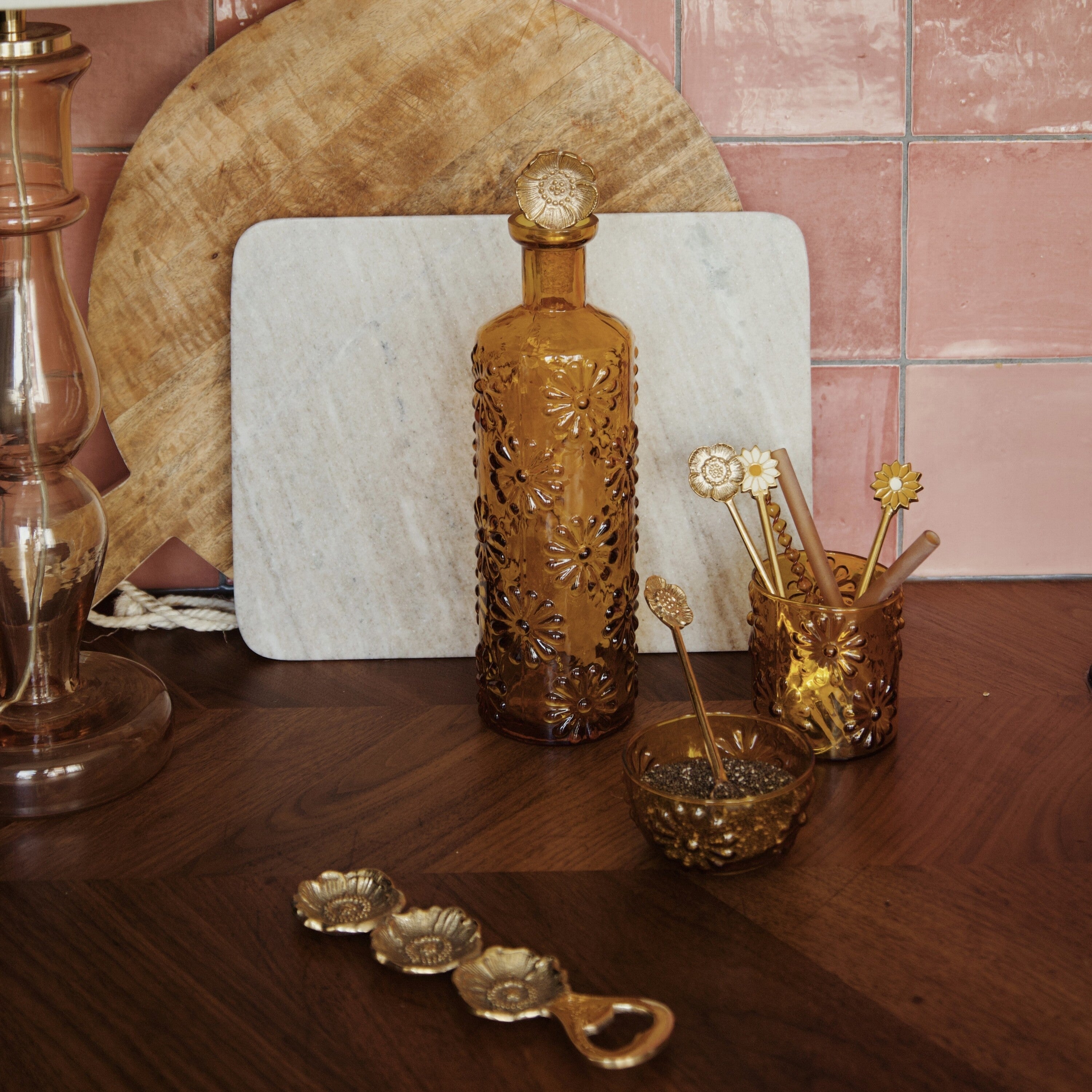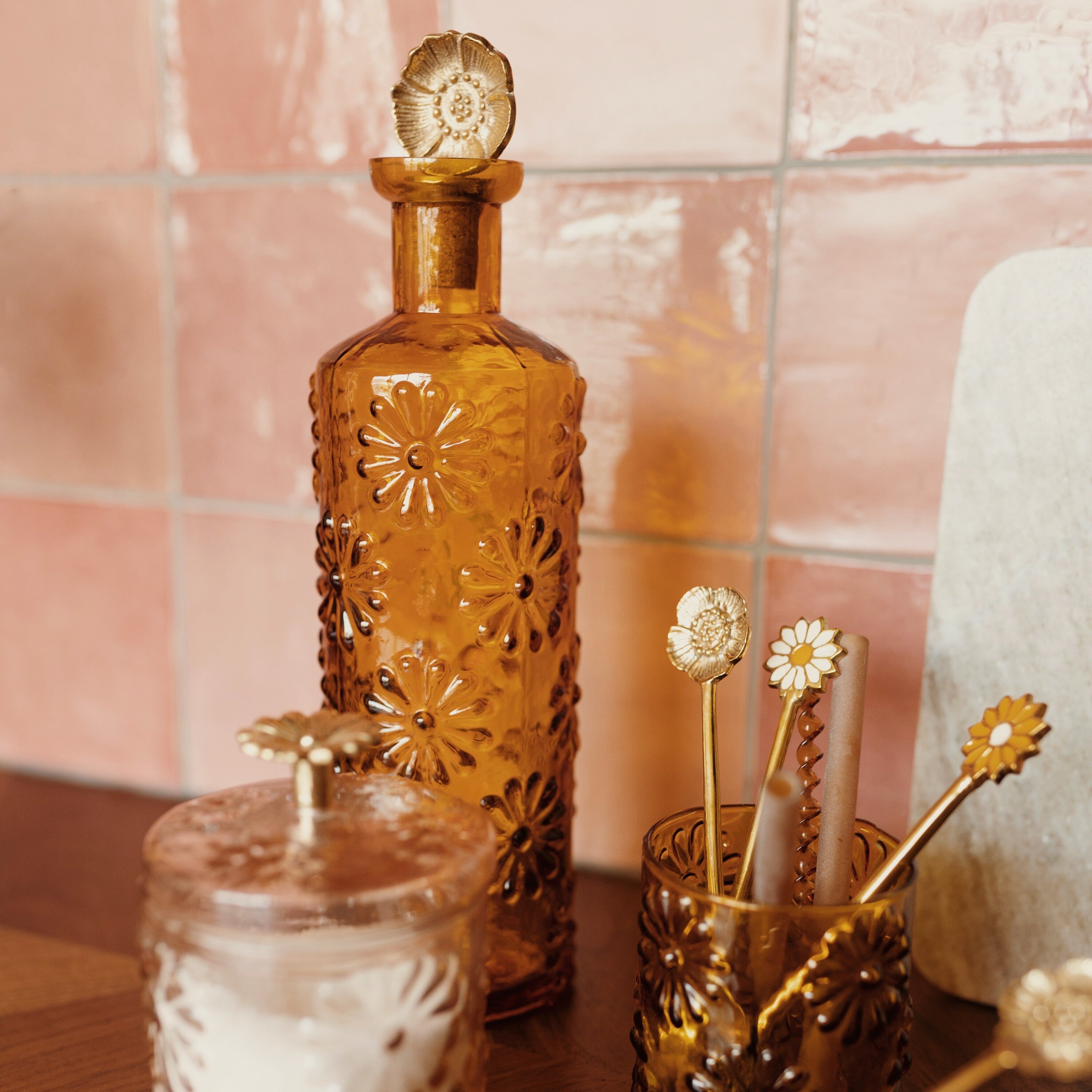 À la Decoratieve Fles Bloemen - Mosterd