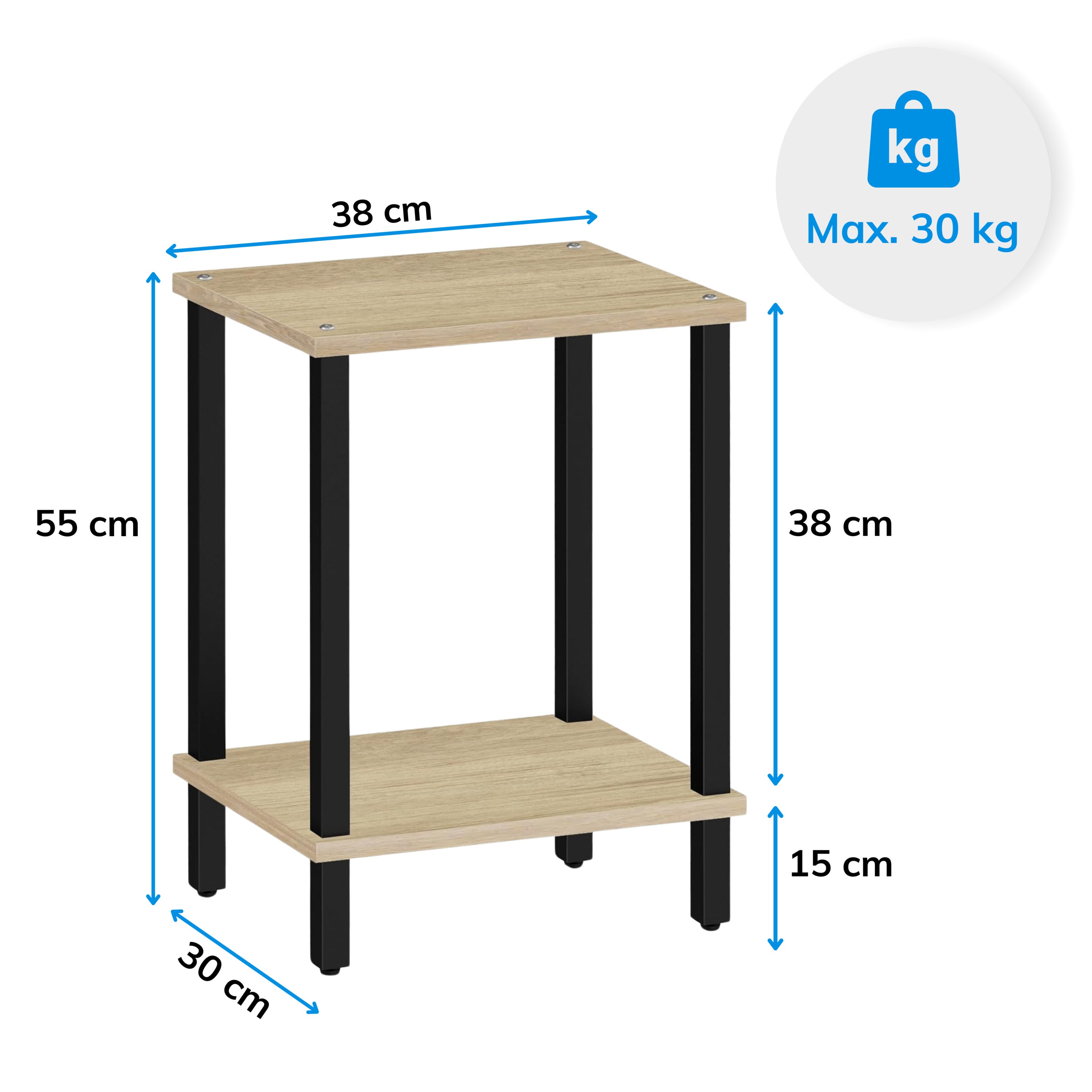 ACAZA Bijzettafel - Tafeltje - Warme eik - 38 x 30 x 55 cm (L x B x H) - Nachtkastje - Tafel Industrieel - Banktafel - Bijzettafels - Bijzettafel warme eik - Bijzettafel hout - Houten Bijzettafel