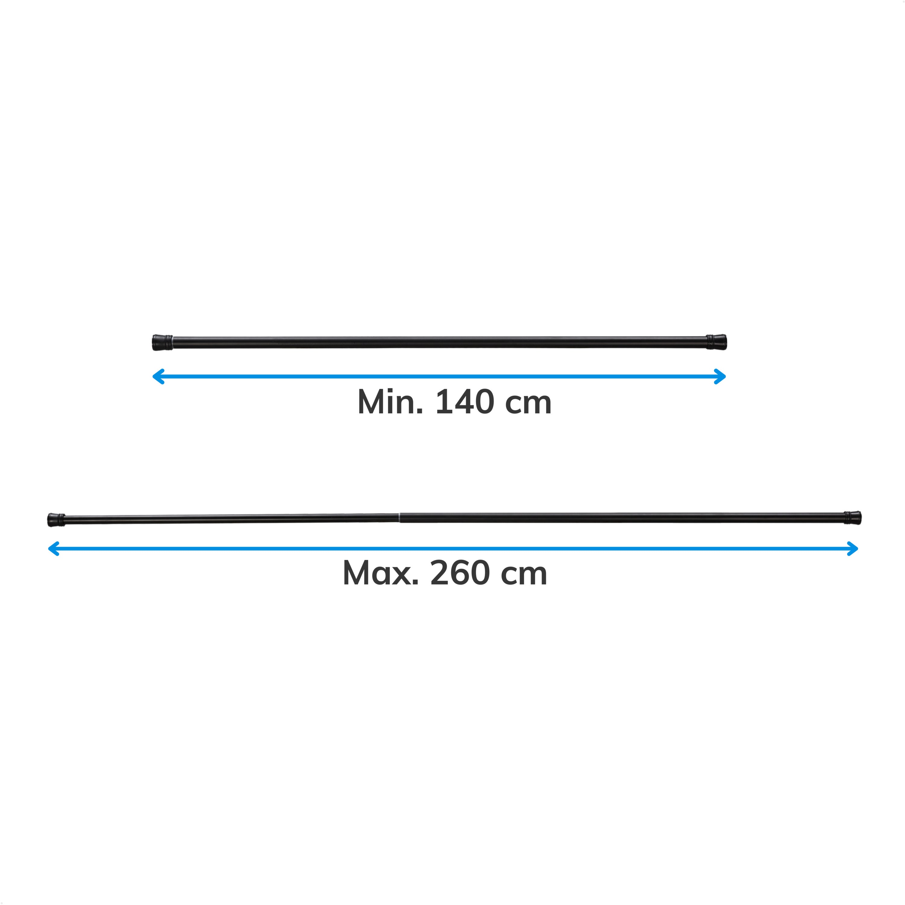 Wil je jouw douchegordijn ophangen aan een douchestang?Deze stang van ACAZA kan je uitschuiven van 140 tot 260 cm. De douchestang kan je gemakkelijk klemmen tussen de douchewanden zonder dat je in de muur hoeft te boren.Specificaties:- Merk: ACAZA- Kleur: zwart- Lengte: 140 tot 260 cm- Diameter : 22-25 mm (standaardmaat; geschikt voor quasi alle douchegordijnen)- Inclusief duidelijke handleiding