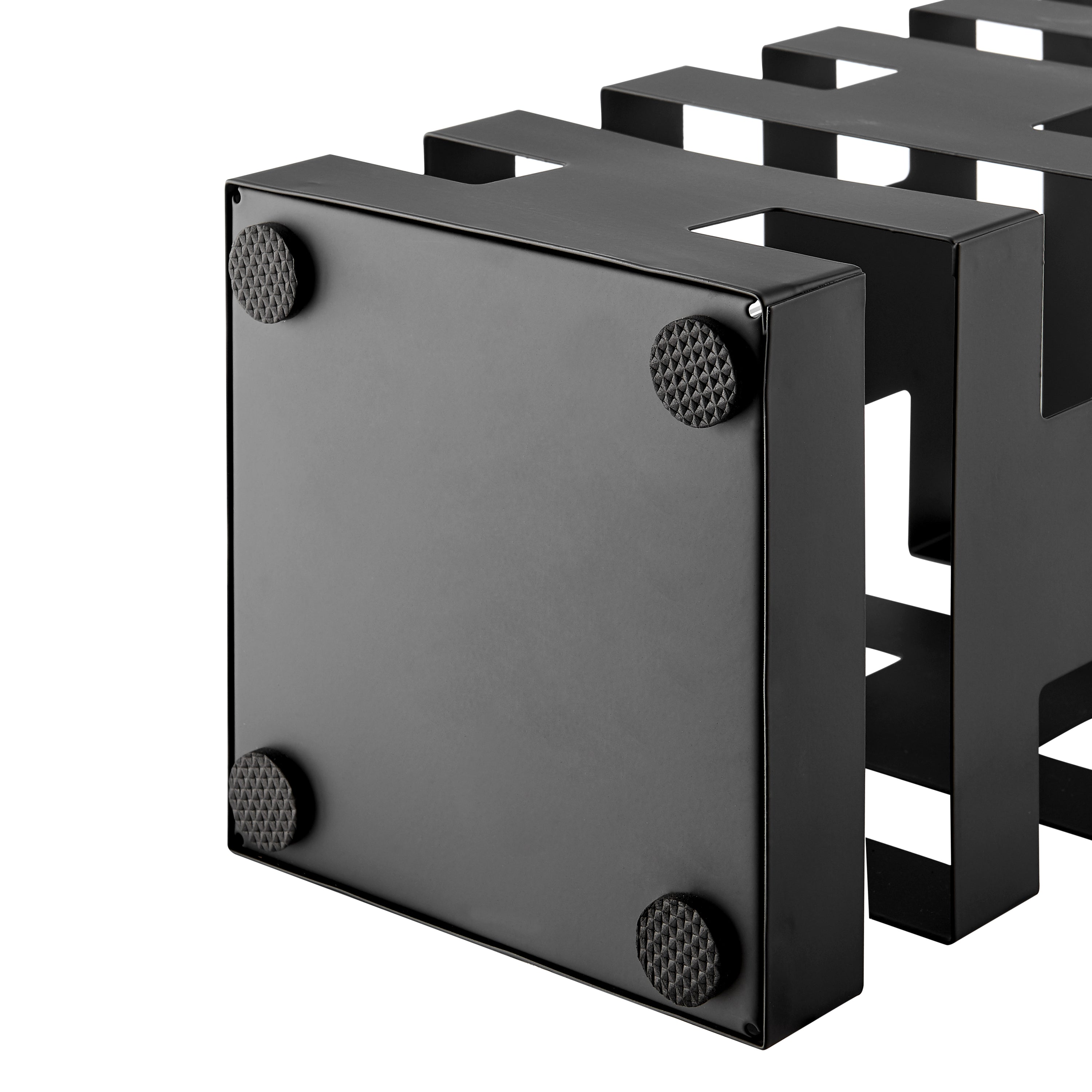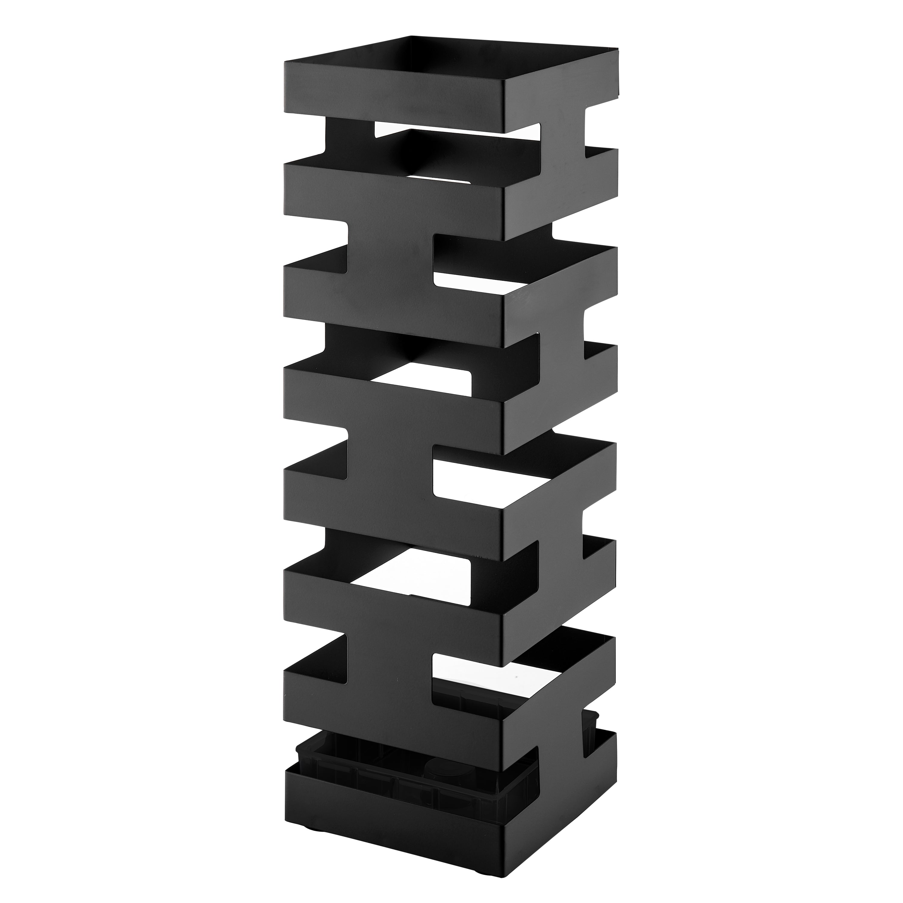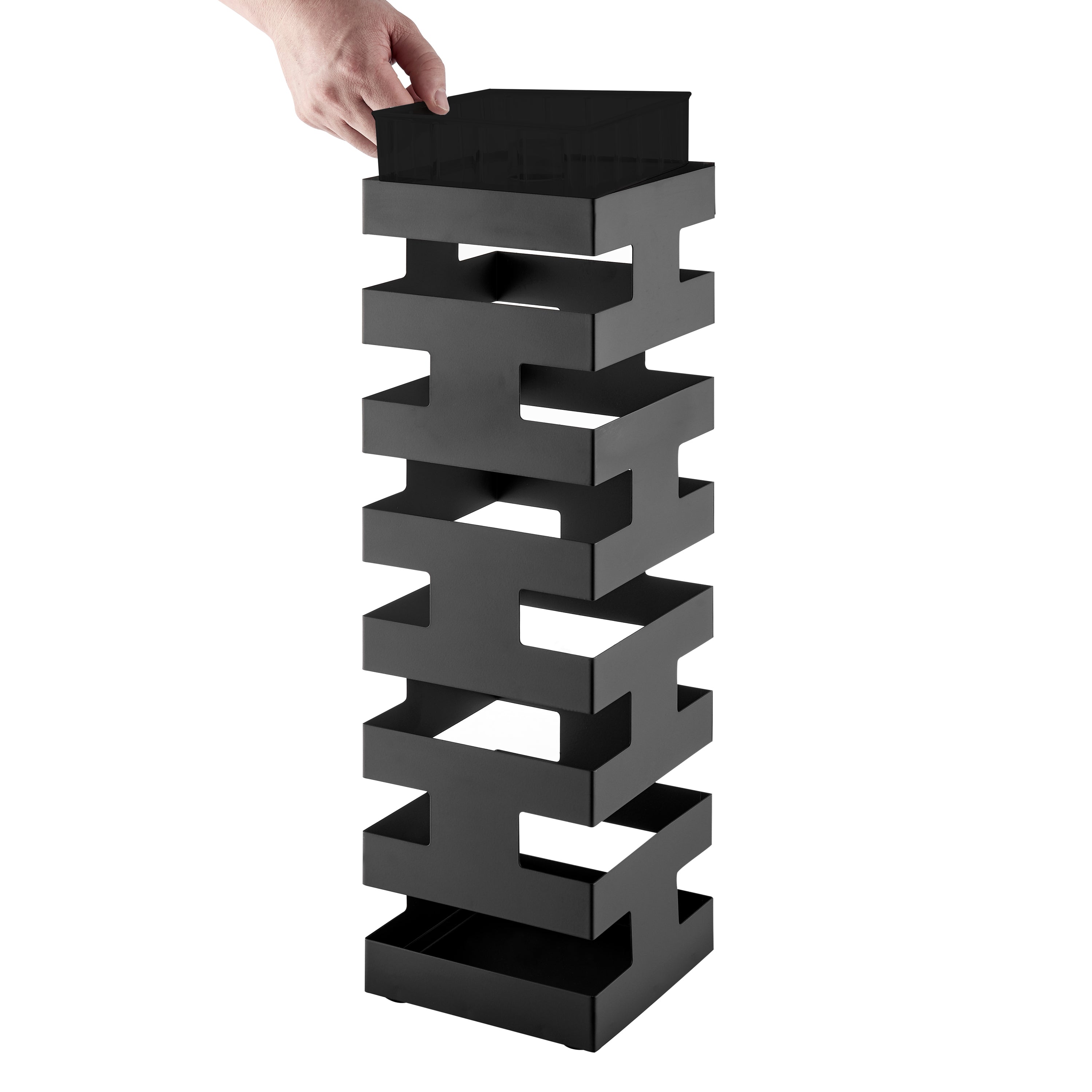 Deze rechthoekige paraplubak combineert gebruiksgemak met een tof design. Door gebruik te maken van een plastic opvangbakje onderaan de paraplubak zal je vloer netjes blijven. Om krassen op de vloer tegen te gaan, werden eveneens 4 beschermingspads onderaan de parapluhouder voorzien. Specificaties: - Merk: ACAZA- Materiaal: Metaal - Afmetingen: 49cm Hoog, 15,5cm Breed en 15,5cm Diep- Gewicht: 1.8 kg - Kleur: zwartLevering: - 1 x paraplubak
