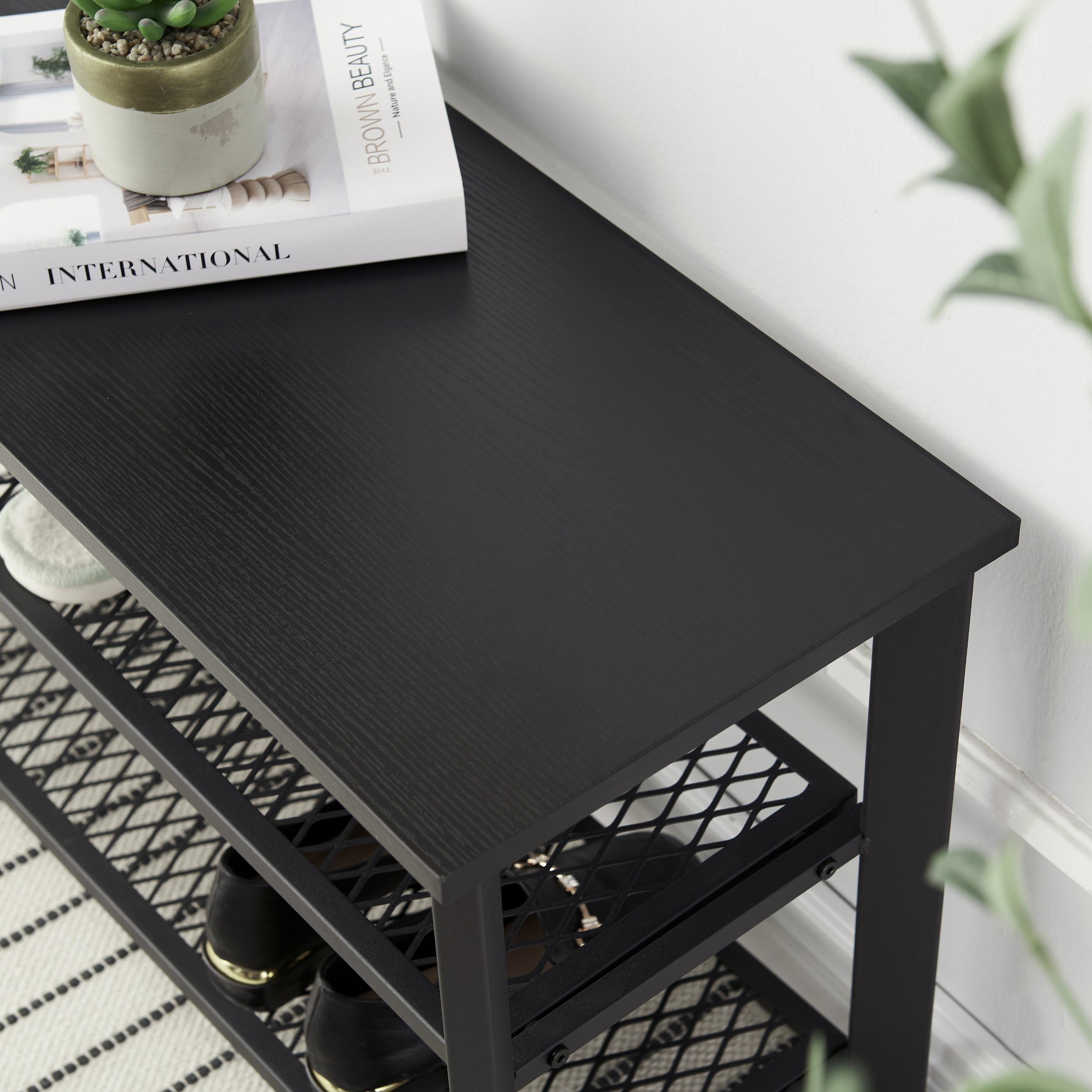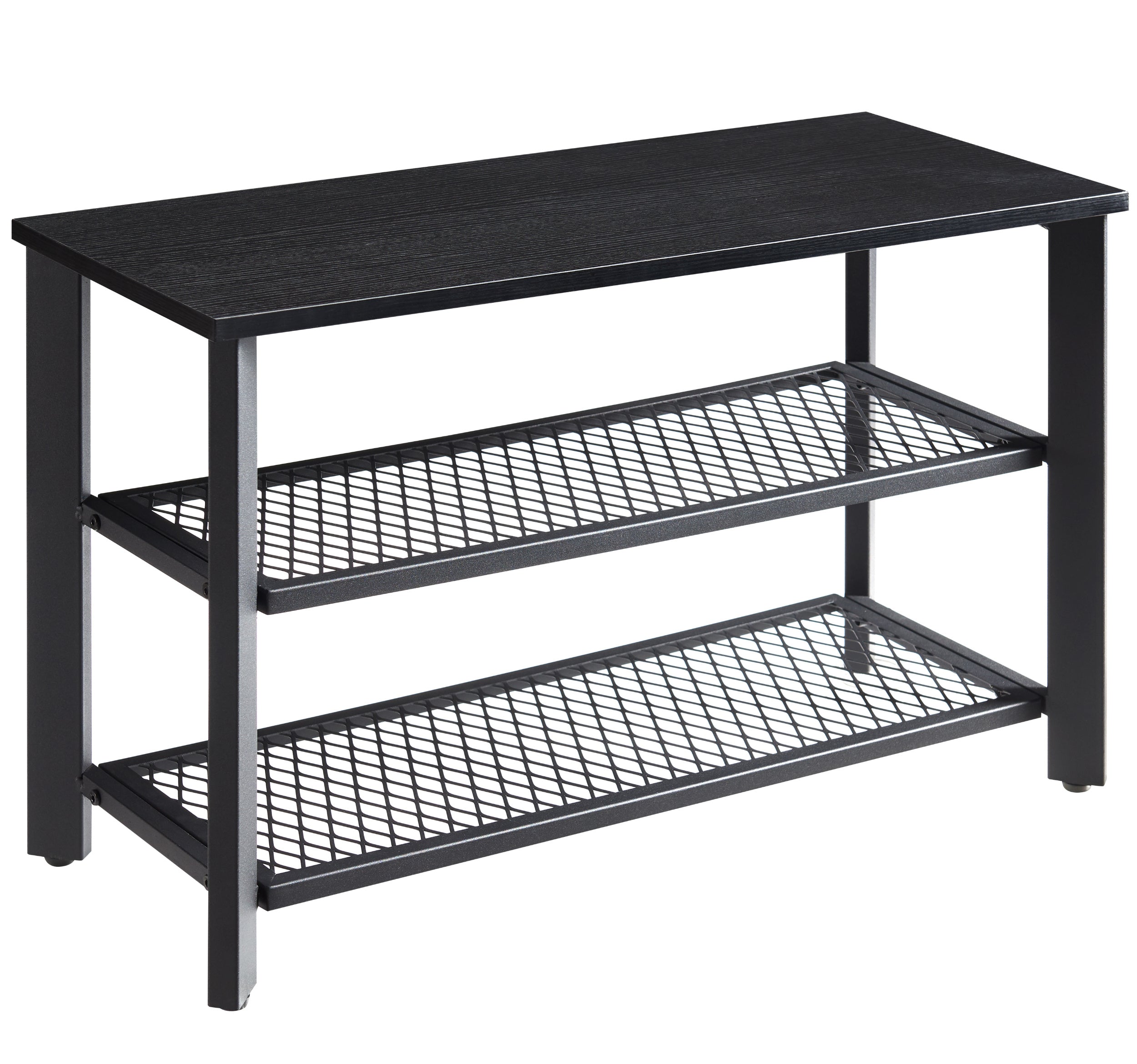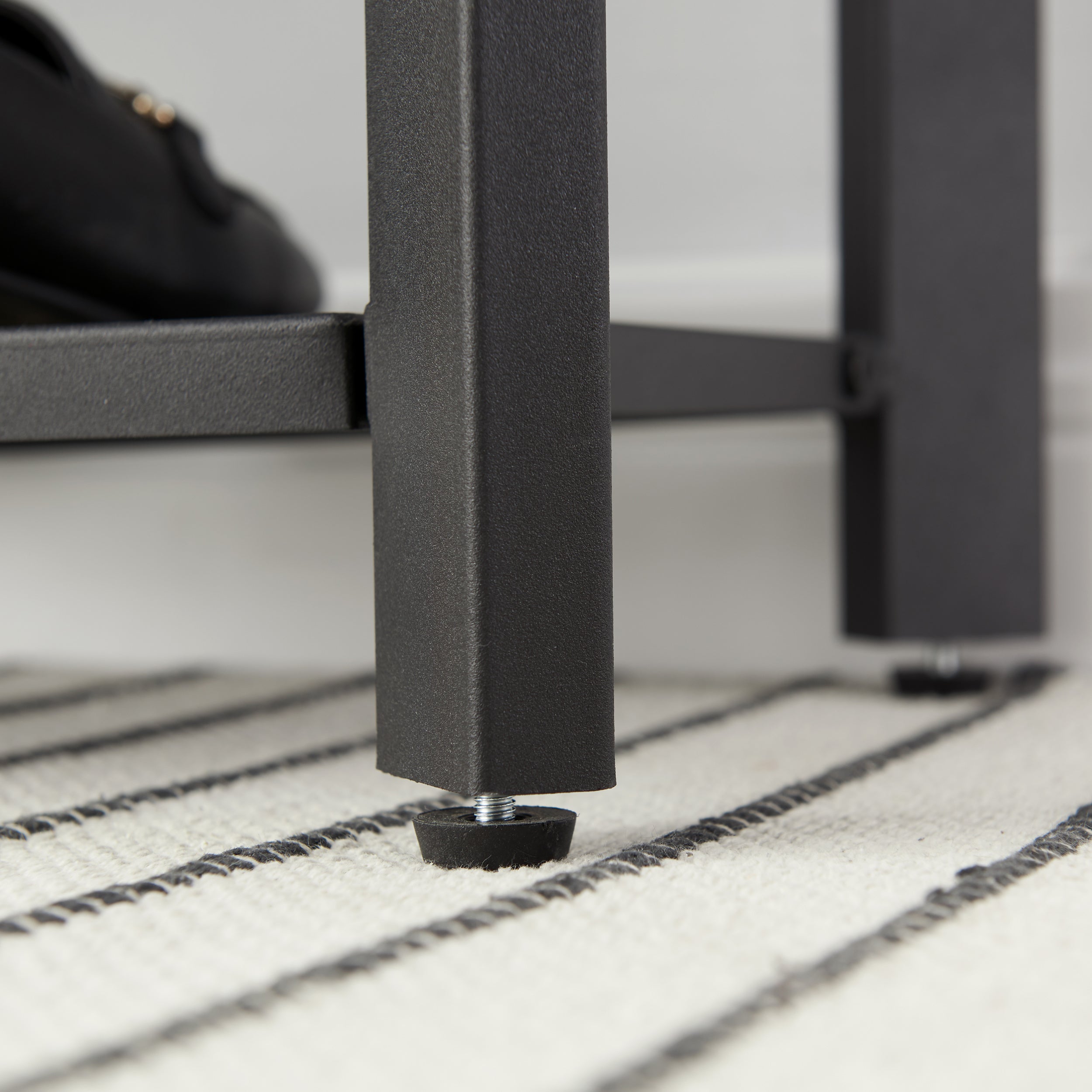 Loopt er ook een sloddervosje bij u thuis rond? Dit elegante schoenenrek van ACAZA is de oplossing!Functioneel en stijlvolDit opbergrek heeft 3 niveaus en neemt weinig ruimte in beslag. Het rekje biedt toch een grote capaciteit om je schoenen op te bergen en aan te trekken. De zwarte kleur van het houten blad en het metalen frame zal een strak moderne toets geven aan uw inkomhal, entree of slaapkamer. HandigDit schoenrek met bankje heeft 4 voetjes die voor een goede stabiliteit zorgen, zelfs op een licht oneffen ondergrond. Ze beschermen de vloer ook tegen krassen. Met een draagvermogen van 90 kg kan je rustig je sneakers of andere schoenen aantrekken.Kenmerken:- Kleur: zwart- Materialen: spaanplaat, ijzeren frame- Afmetingen: 73 cm lengte, 30 cm diepte, 46 cm hoogte- Gewicht: 8 kg- Maximale belasting: 90 kgInhoud van pakket :- 1 x Schoenenrekje- 1 x zak met accessoires- 1 x montagehandleiding