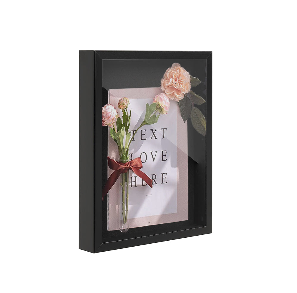 Diepe 3D lijst voor al je creaties. Bevestig foto's, kunst, of 3D-objecten. Zwarte fluwelen achtergrond. Eenvoudig te bevestigen. Modern design