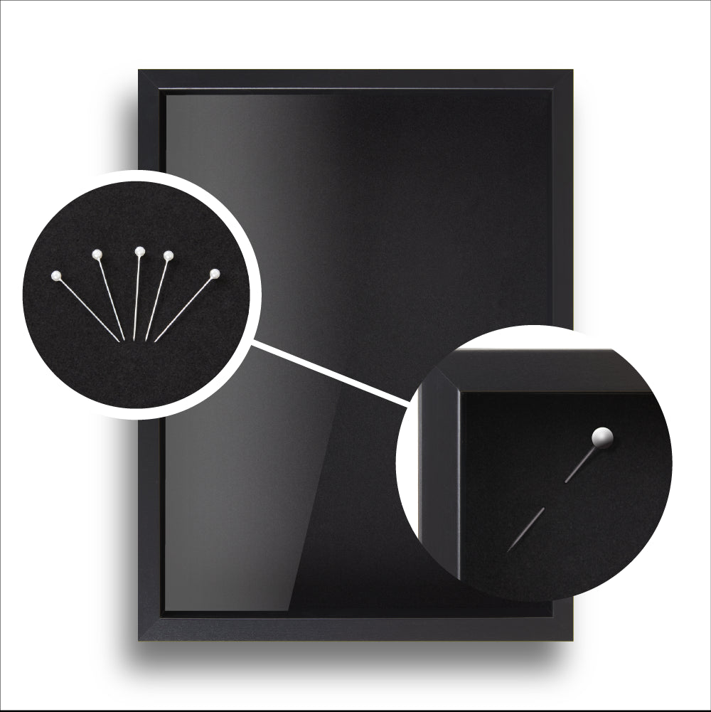 Dankzij deze diepe 3D lijst van ACAZA kan je je favoriete objecten een plaatsje aan de muur geven.Met een diepte van 3.5 cm geeft deze fotolijst verschillende opties om objecten en herinneringen in tentoon te spreiden, zoals bijvoorbeeld een bruidsboeket, een rompertje van een baby, medailles, opgezette dieren, een knutselwerkje,... De achterkant waarop je jouw objecten kan bevestigen is gemaakt van verhard schuim waarop een zwarte vilten laag is bevestigd. Op die manier kan je met prikkers jouw objecten vastpinnen in de lijst.De fotolijst is aan de achterkant voorzien van hangers waarmee je ze zowel horizontaal als verticaal tegen de muur kan bevestigen.Een echt hebbeding voor de creatieveling!Eigenschappen:Merk : ACAZAMateriaal: frame in MDF hout, plexiglas, metalen bevestigingsclipsKleur: ZwartAfmetingen: 40x60cmDiepte binnenmaat: 3.5 cmDiepte buitenmaat kader: 6 cmLevering:1x fotokader5x prikbord pinnen om jouw objecten te bevestigen in de fotolijst