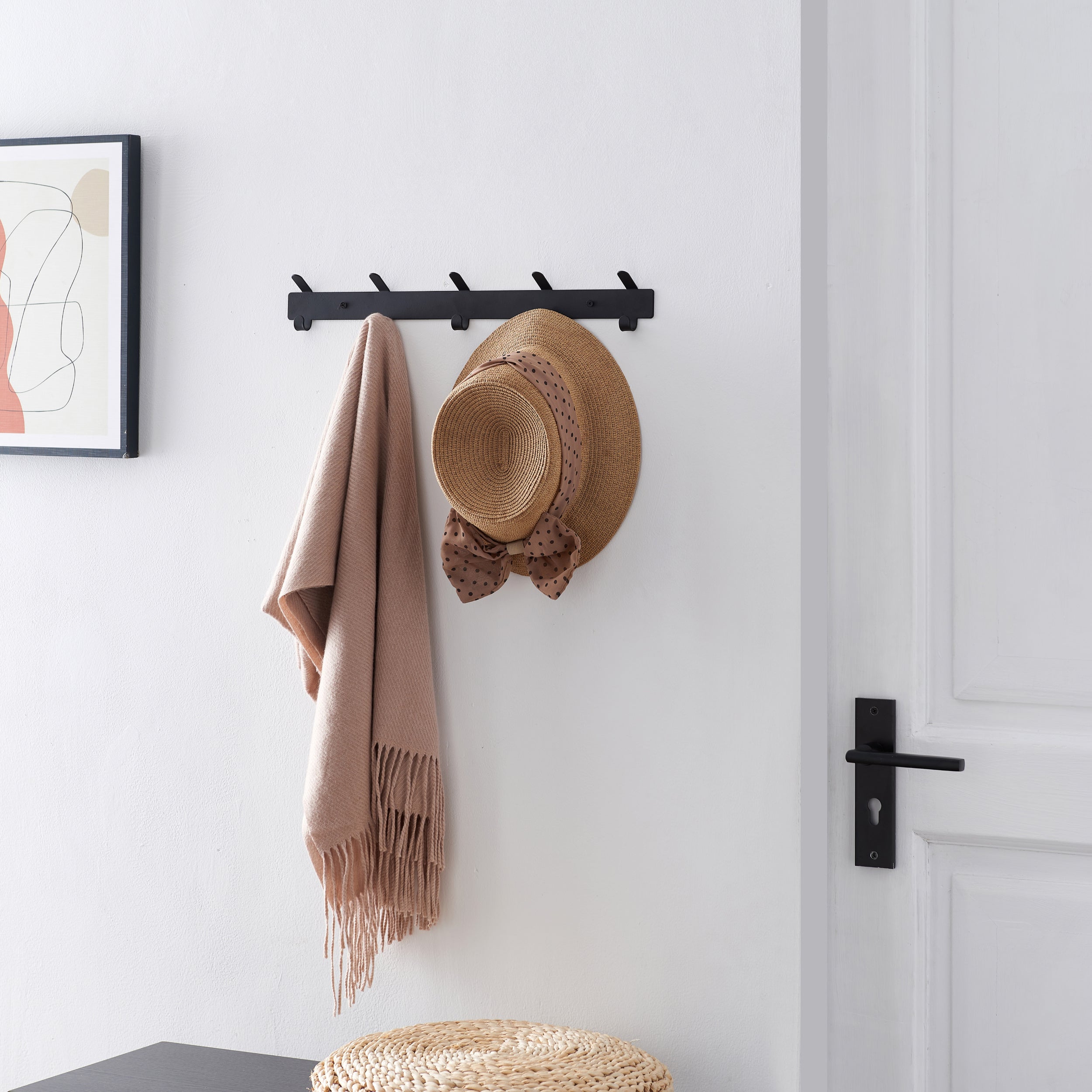 ACAZA Wand Kapstok in Metaal, Hangende Muurkapstok van 49 cm Lang met 10 Haken, Zwart