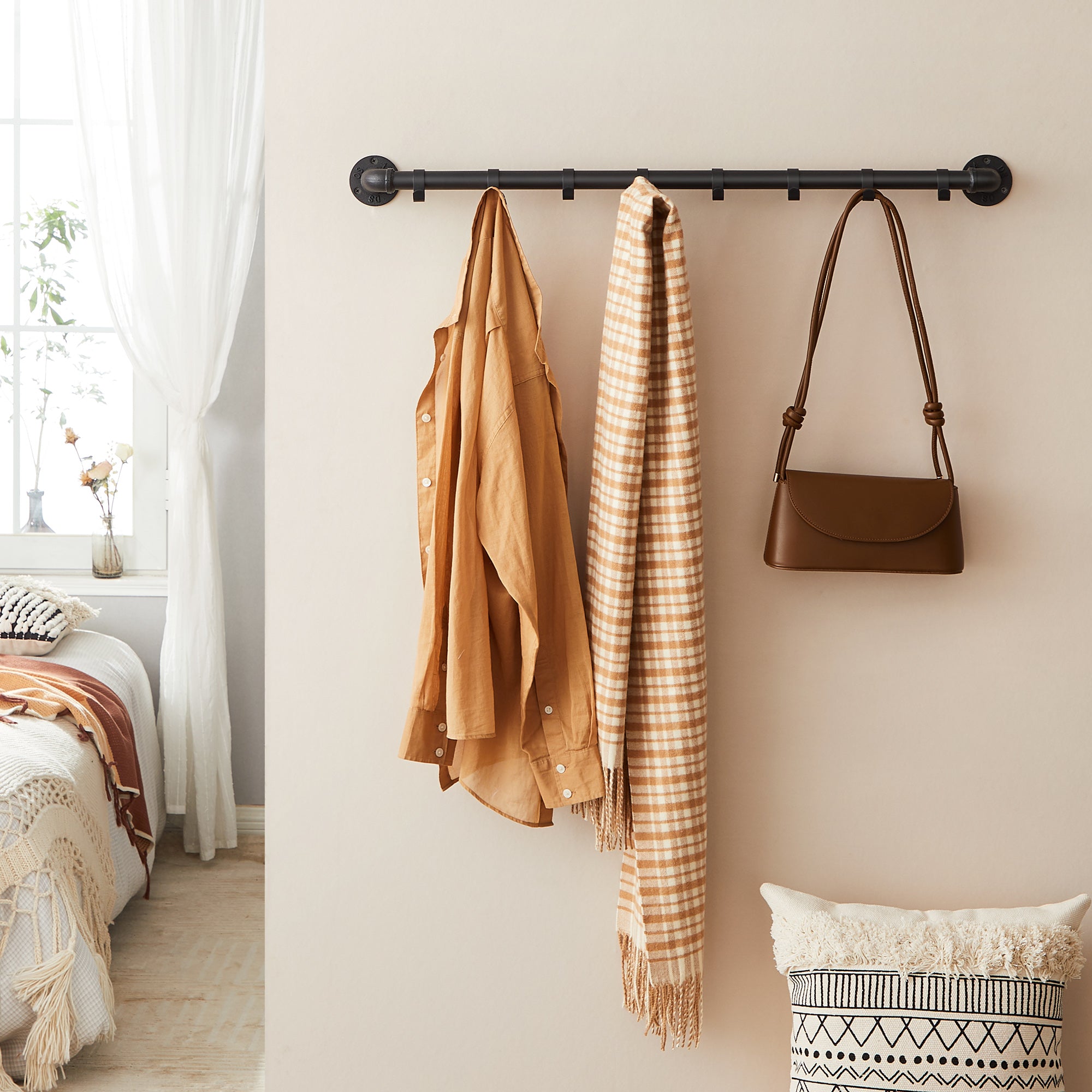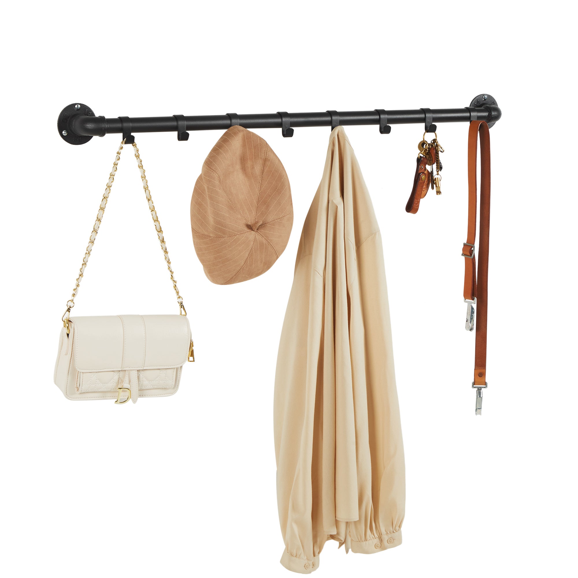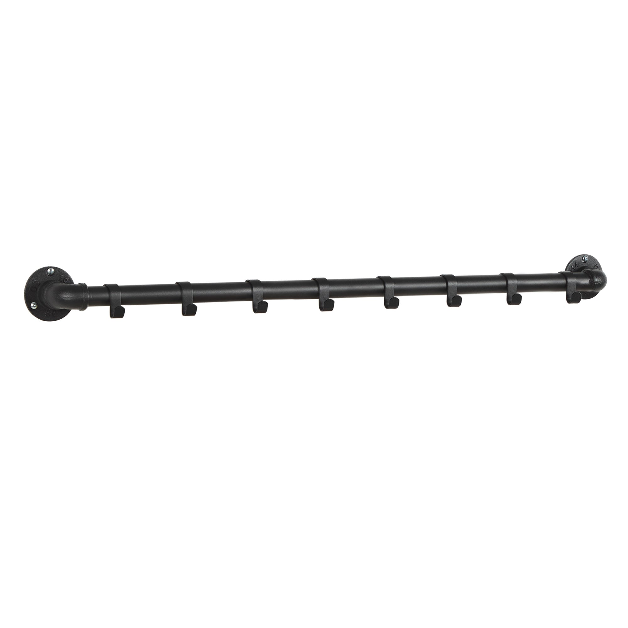 Voeg een vleugje industrieel design toe aan jouw kamer met deze lange zwarte kapstok van ACAZA! De wandkapstok heeft een roede met 8 haken waar je al jouw favoriete kledij aan kan hangen. Afmetingen: 90 cm lang, 7 cm diep en 7.5 cm hoog