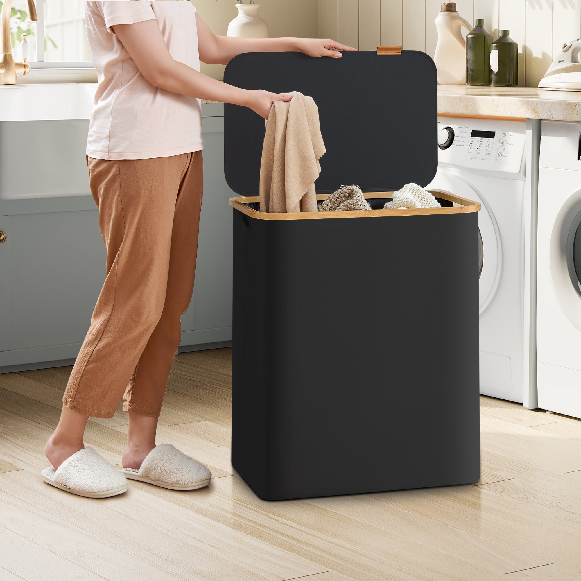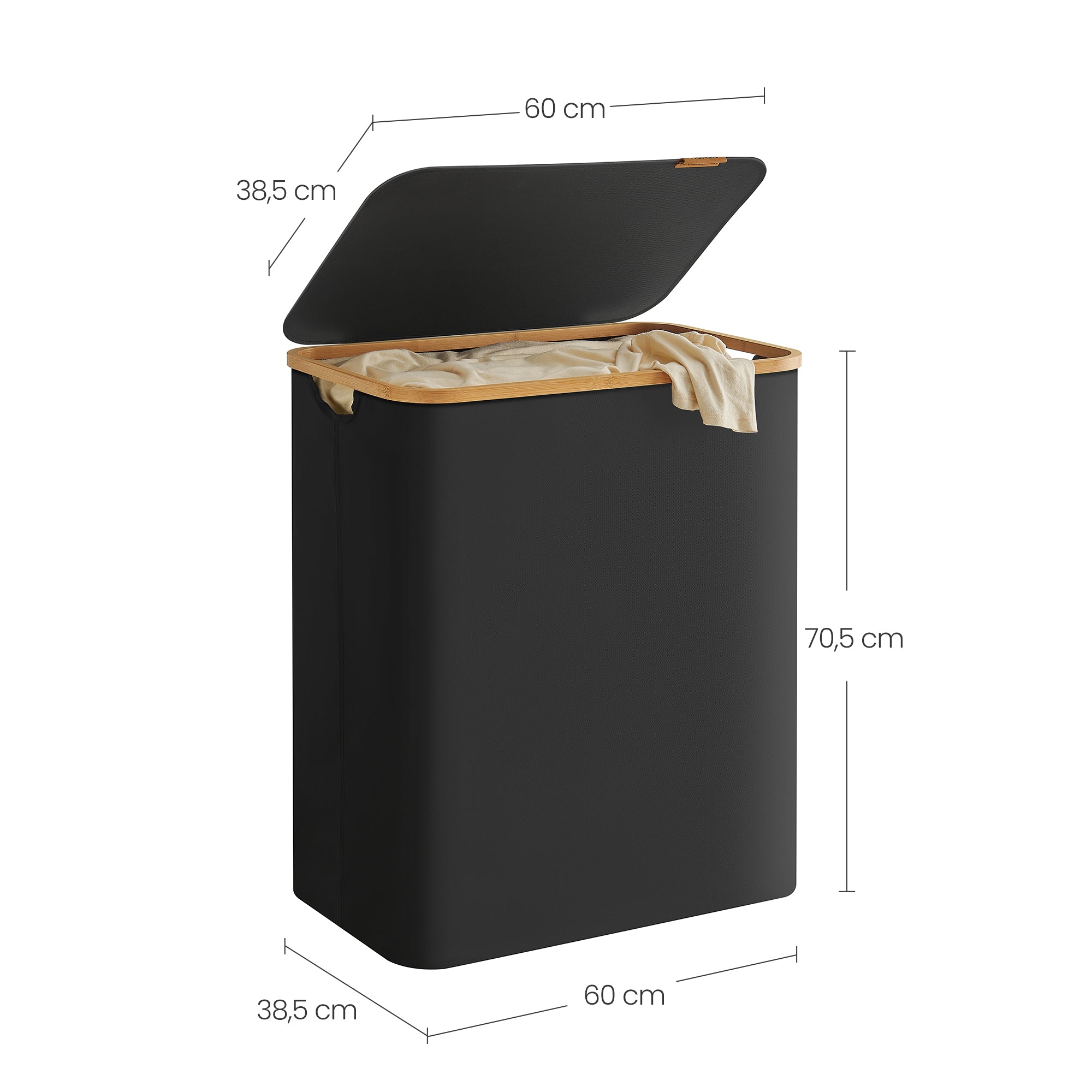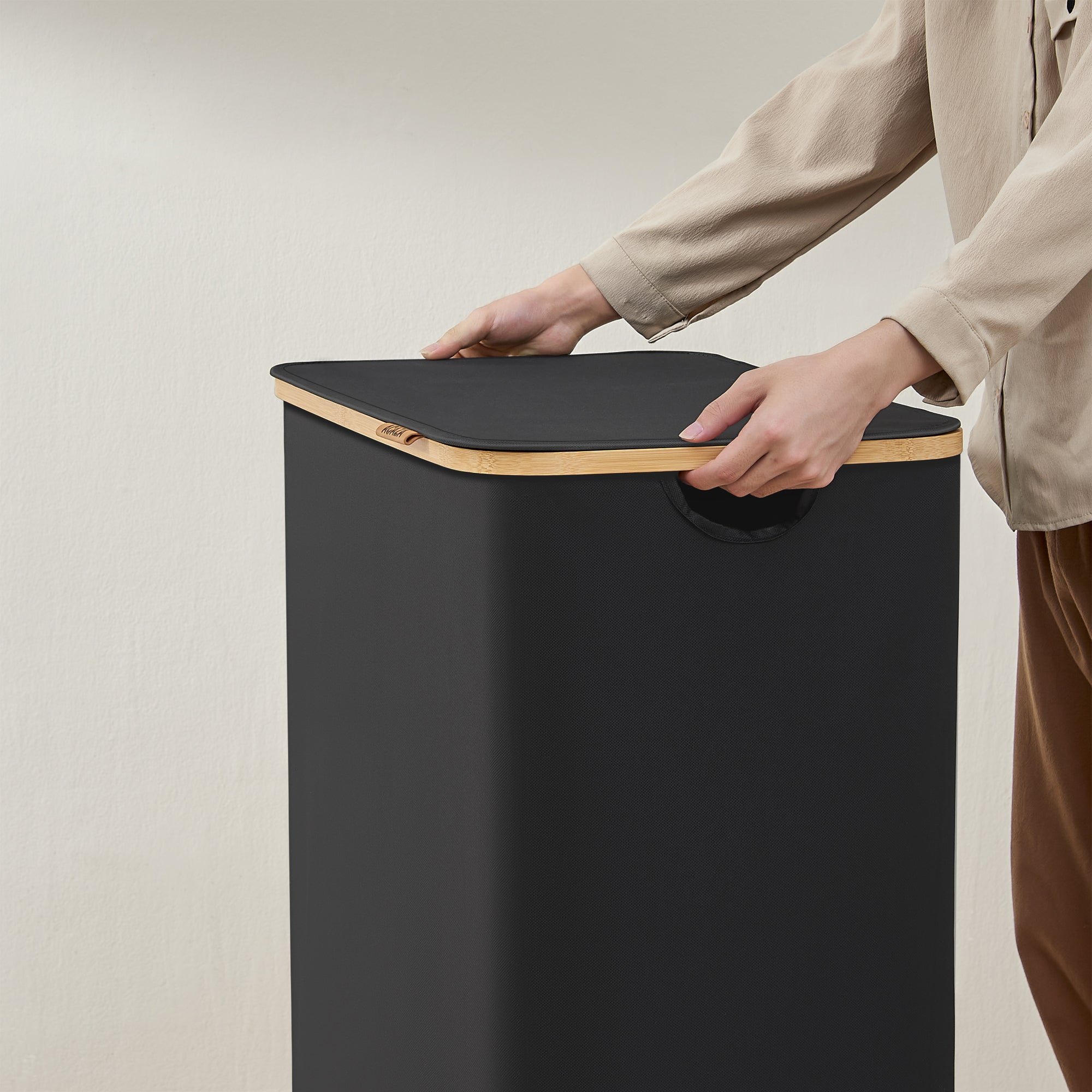 ACAZA wasmand - wassorteerder - 3 vakken - Bamboe - Zwart