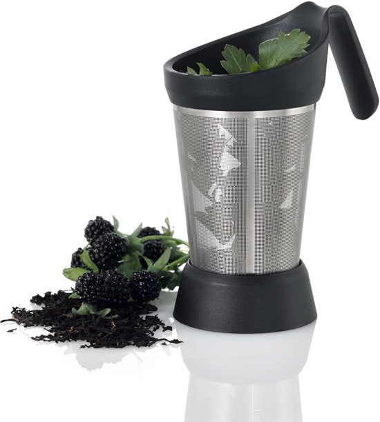 De Teaboy van AdHoc is een kruidenfilter dat onwijs makkelijk in gebruik is. Of je nou thee wilt laten trekken of een bouillon gaat maken, de Teaboy kan je erbij helpen. Vul het filter met losse thee of kruiden en hang hem aan de rand van jouw mok of pan. Het RVS geeft geen smaak af en wordt ook niet aangetast door de vloeistof. Na gebruik kan de Teaboy makkelijk schoon gemaakt worden en hij mag ook nog eens in de vaatwasser.
