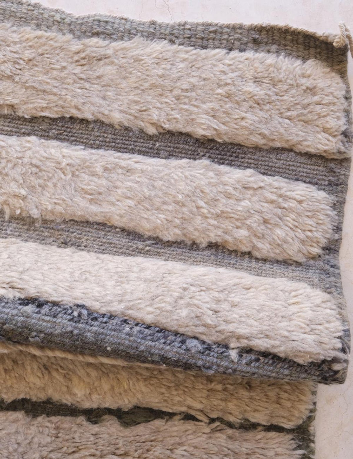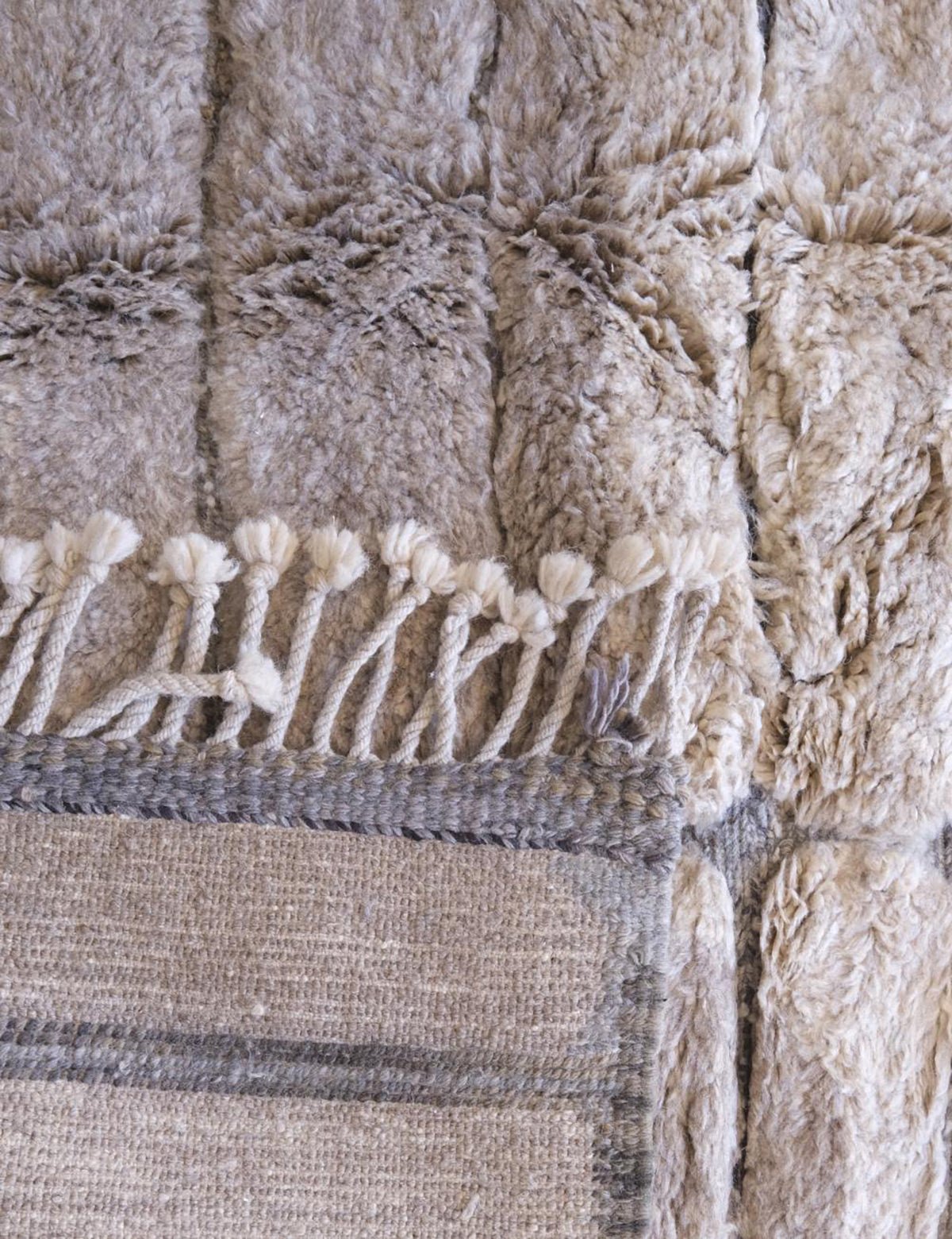 Elk tapijt wordt gemaakt door de vrouwen van de Berberstammen, volgens een voorouderlijke kennis die van generatie op generatie is doorgegeven. Het gebruikte grondstof is natuurlijke wol van een soort schapen die bekend staan om hun kleine formaat en hoge weerstand.