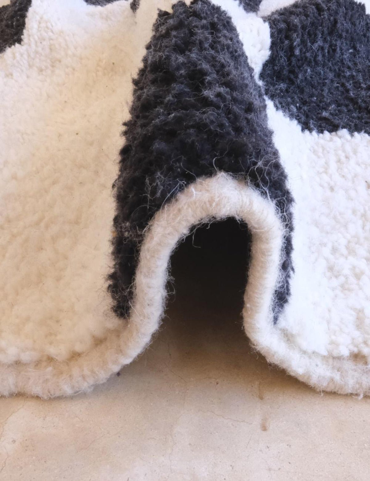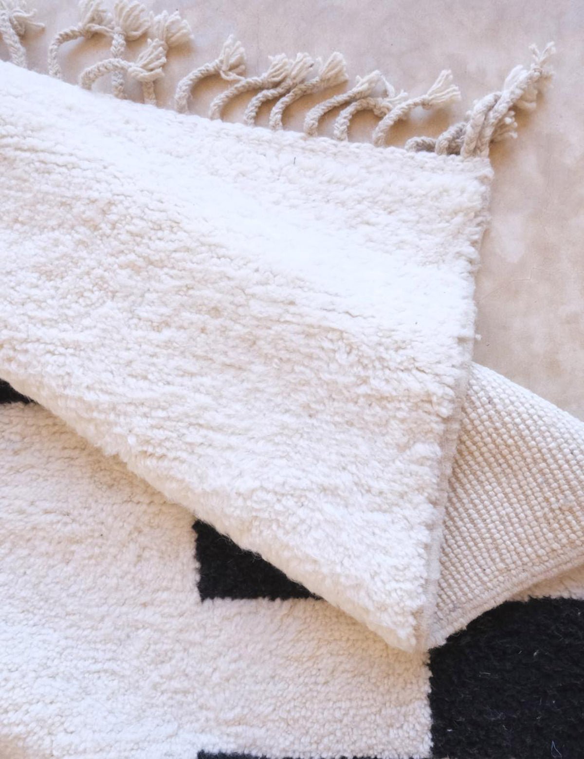 Elk tapijt wordt gemaakt door de vrouwen van de Berberstammen, volgens een voorouderlijke kennis die van generatie op generatie is doorgegeven. Het gebruikte grondstof is natuurlijke wol van een soort schapen die bekend staan om hun kleine formaat en hoge weerstand.