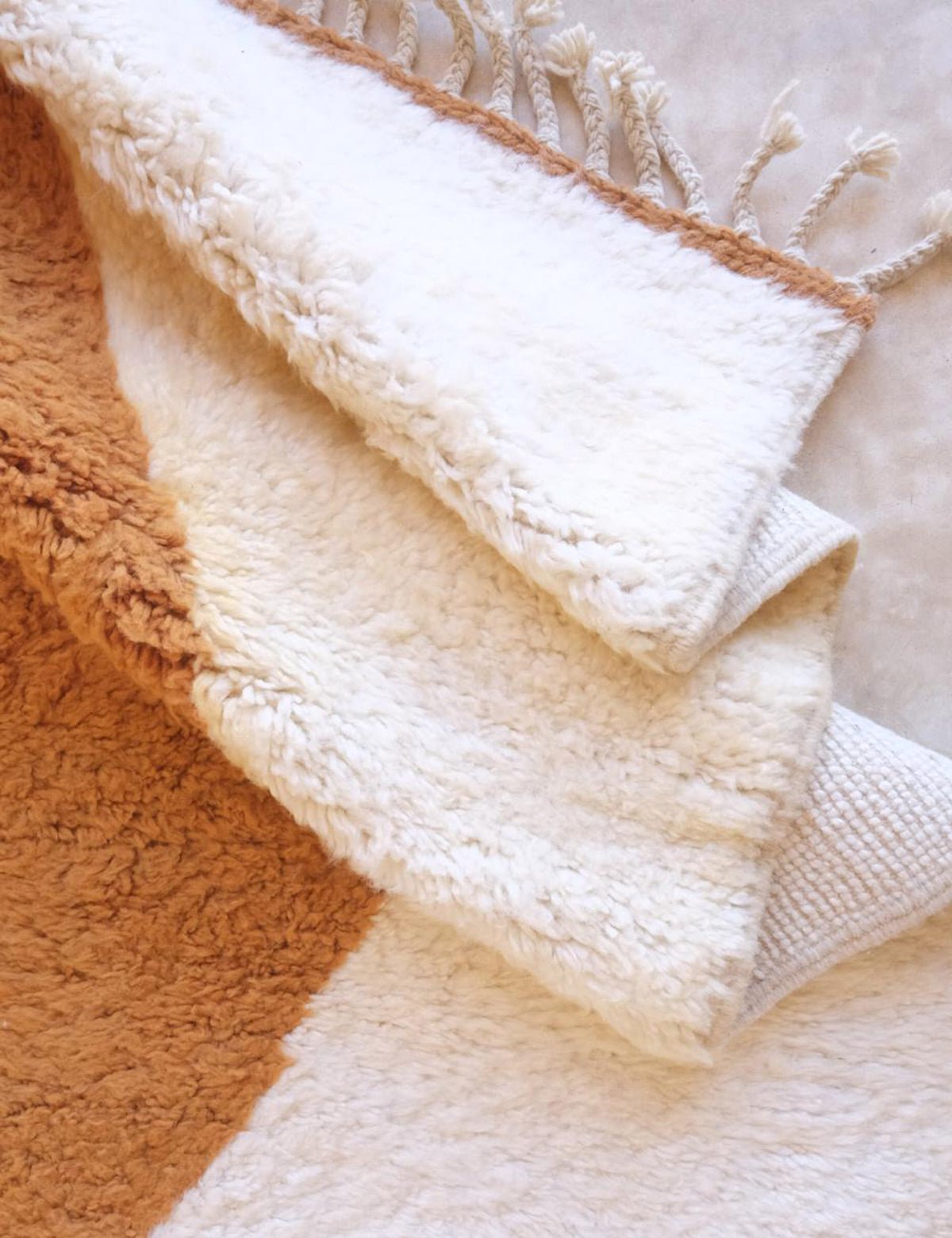 Elk tapijt wordt gemaakt door de vrouwen van de Berberstammen, volgens een voorouderlijke kennis die van generatie op generatie is doorgegeven. Het gebruikte grondstof is natuurlijke wol van een soort schapen die bekend staan om hun kleine formaat en hoge weerstand.