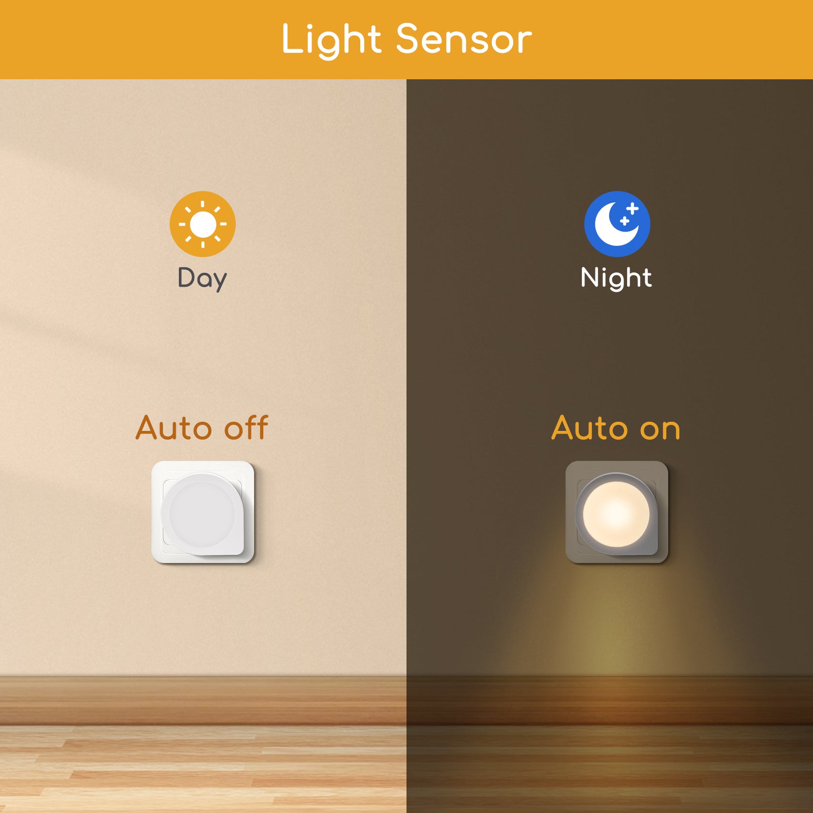 - Dit nachtlampje gaat overdag automatisch uit en gaat 's nachts aan.