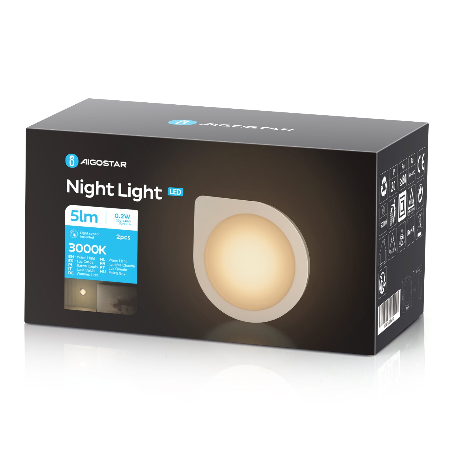 Aigostar 10B9R-LED Nachtlampje Stopcontact- Babykamer-Kinderen-2 Stuks