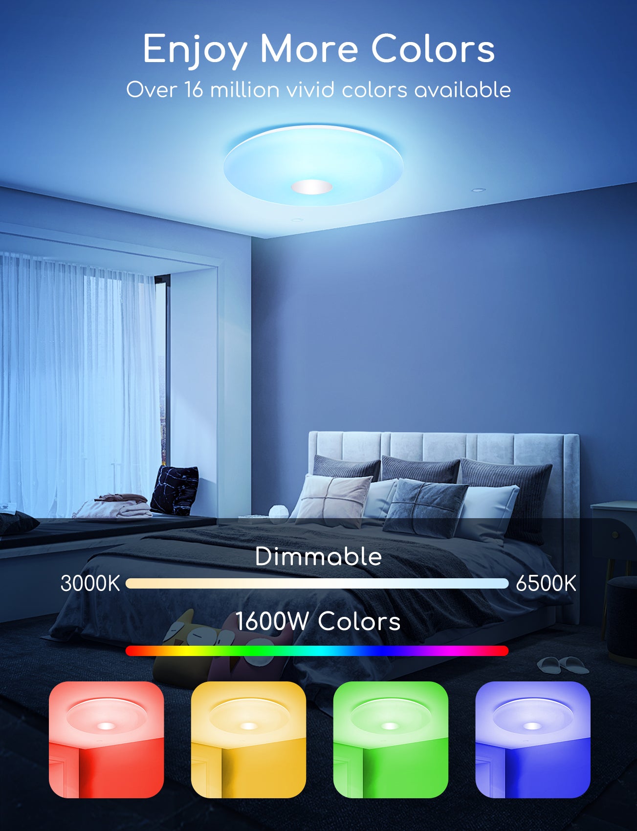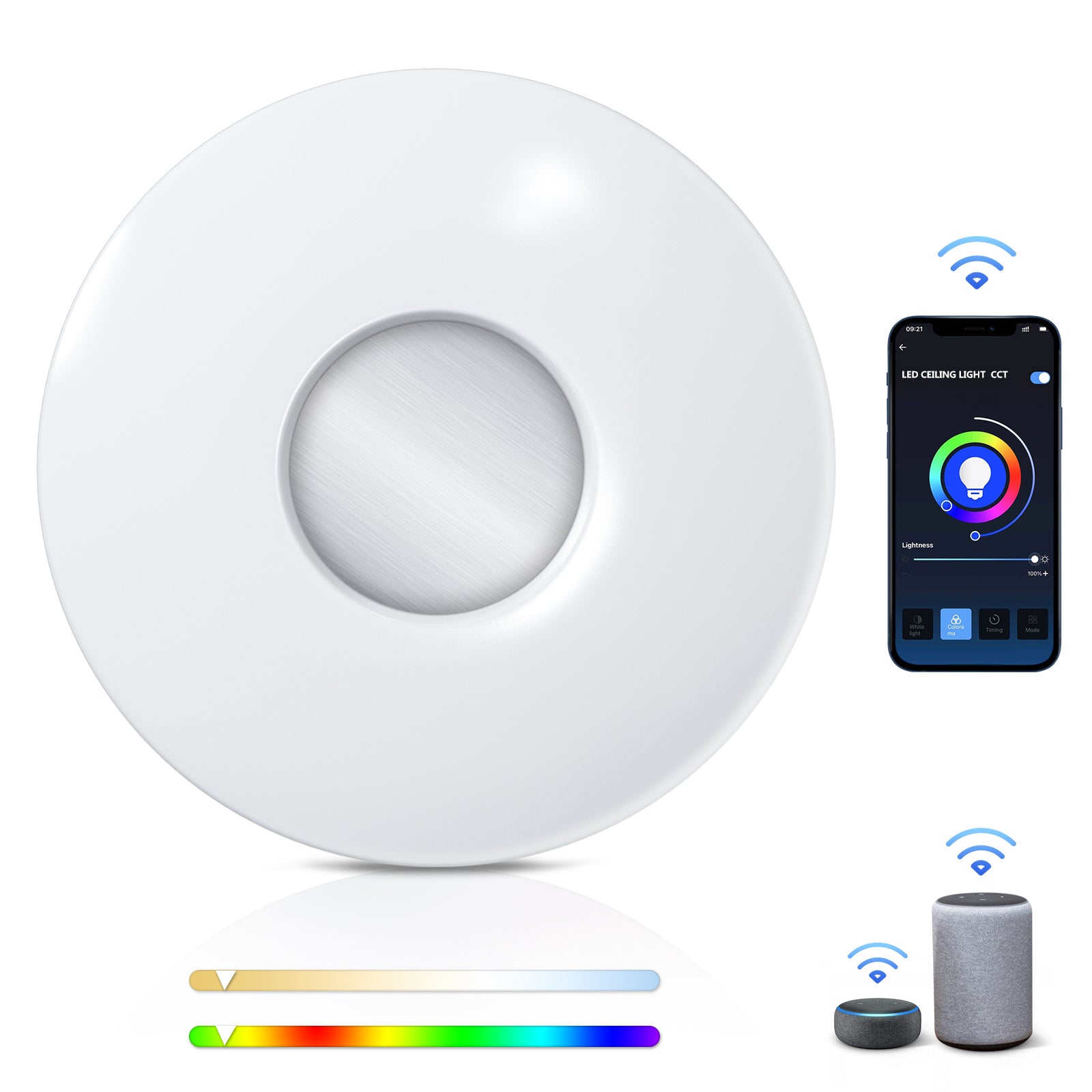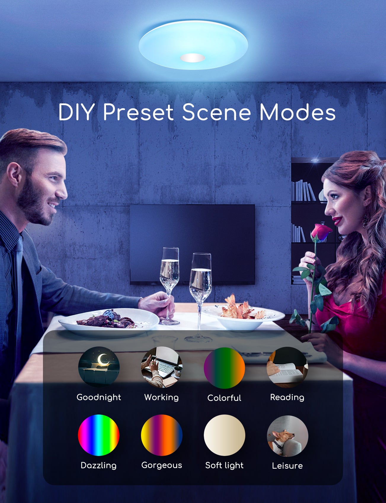 De lichthelderheid en kleurtemperatuur aangepast door slimme bediening, verschillende lichtscènemodus kiezen, uw eigen lichtervaring creëren.