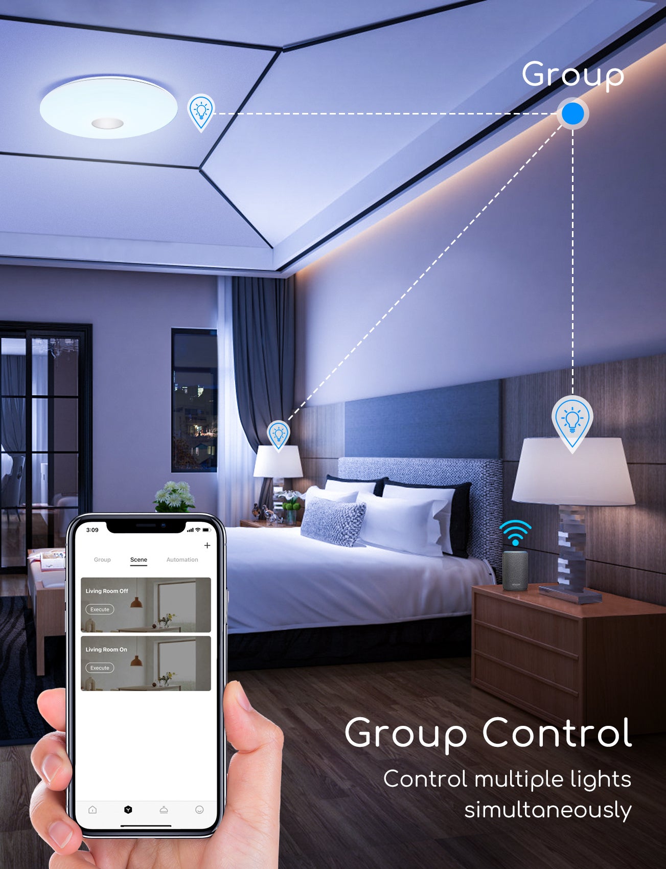 Afstandsbediening met wifi, u kunt het licht op elk moment thuis of buiten bedienen en uw huis met smart grijpen.