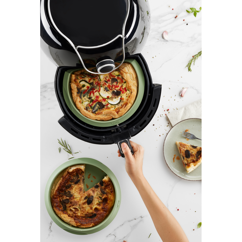 - Set van: 1 airfryer bakvorm, 1 set keukentangen en 1 bakborstel.