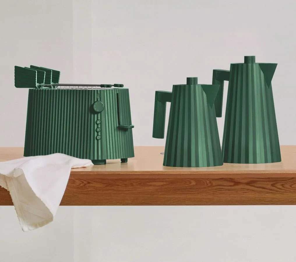 Verrijk je keuken met deze prachtige set van Alessi, ontworpen door Michele de Lucchi. De Plissé collectie staat bekend om zijn elegante design en praktische functionaliteit, waardoor deze broodrooster en waterkoker niet alleen functioneel zijn, maar ook een stijlvolle toevoeging aan je aanrecht. De groene kleur geeft een frisse en levendige touch aan je interieur. Voor het Italiaanse merk Alessi heeft de gerenommeerde designer Michele de Lucchi de populaire Plissé collectie ontworpen. De collectie omarmt een aantal handige keukenapparaten, van citruspersen tot waterkokers, die niet in de keukenkastjes verstopt hoeven te worden. Integendeel, Alessi Plissé wil je laten zien!