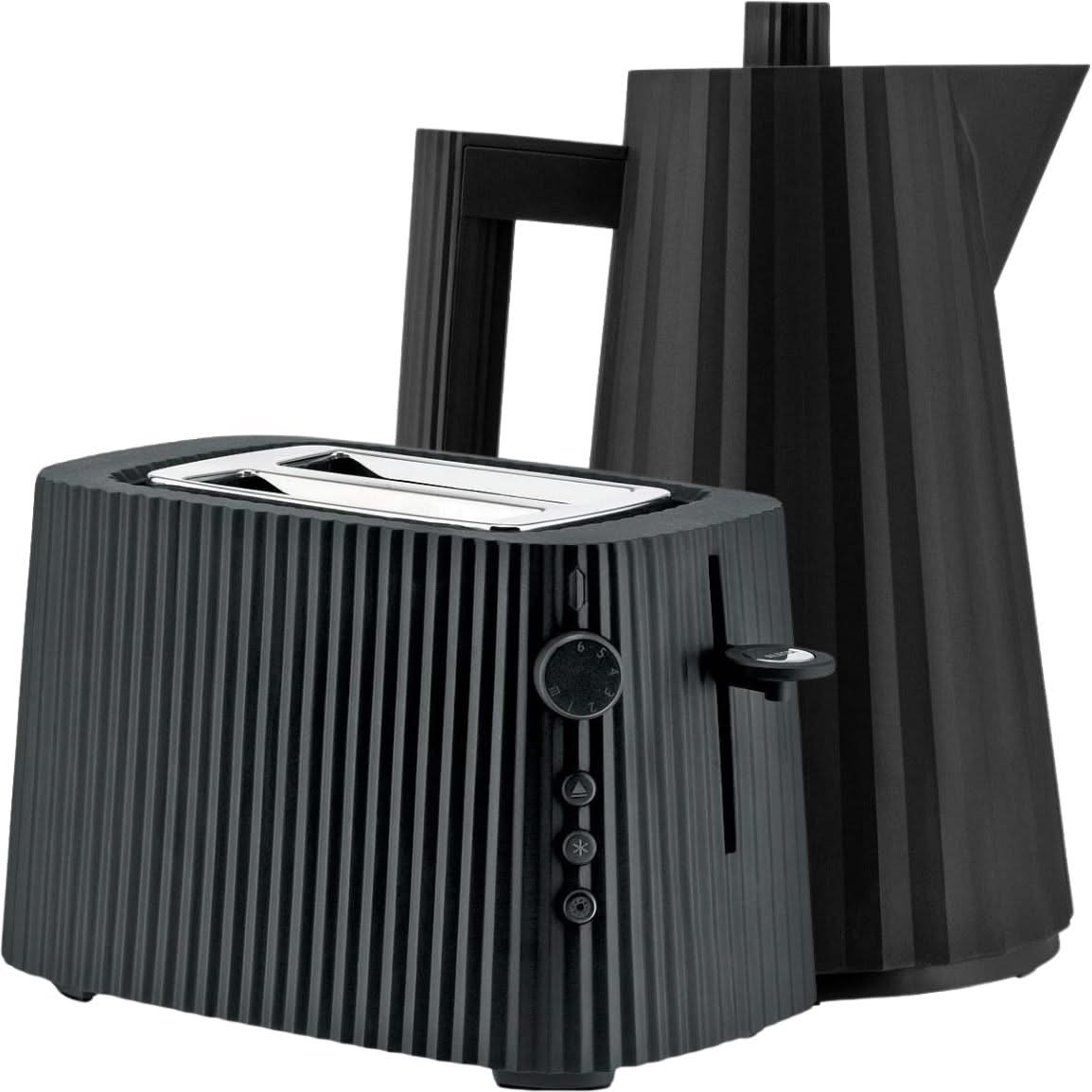 De Alessi Plissé set is meer dan alleen functionele keukenapparatuur; het is een statement. De broodrooster, met zijn 6 standen en verwarm-, ontdooi- en bagelfunctie, biedt je de perfecte toast, terwijl de waterkoker, met droogkookbeveiliging en anti-kalk filter, zorgt voor veilig en schoon water. Beide apparaten zijn BPA-vrij en eenvoudig in gebruik, waardoor ze een waardevolle toevoeging zijn aan elke moderne keuken. Je moet deze set kopen om je keuken een vleugje Italiaanse elegantie te geven en te genieten van het gemak en de kwaliteit die Alessi biedt. Voordelen van de Alessi Broodrooster Plissé + Alessi Waterkoker Plissé 1.7 liter - Zwart - Michele de Lucchi
