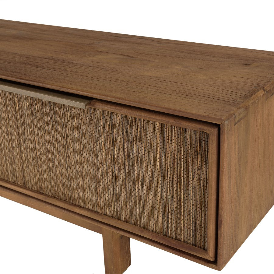 ALIDA - Meuble TV 2 tiroirs en bois teck recyclé et tissage naturel