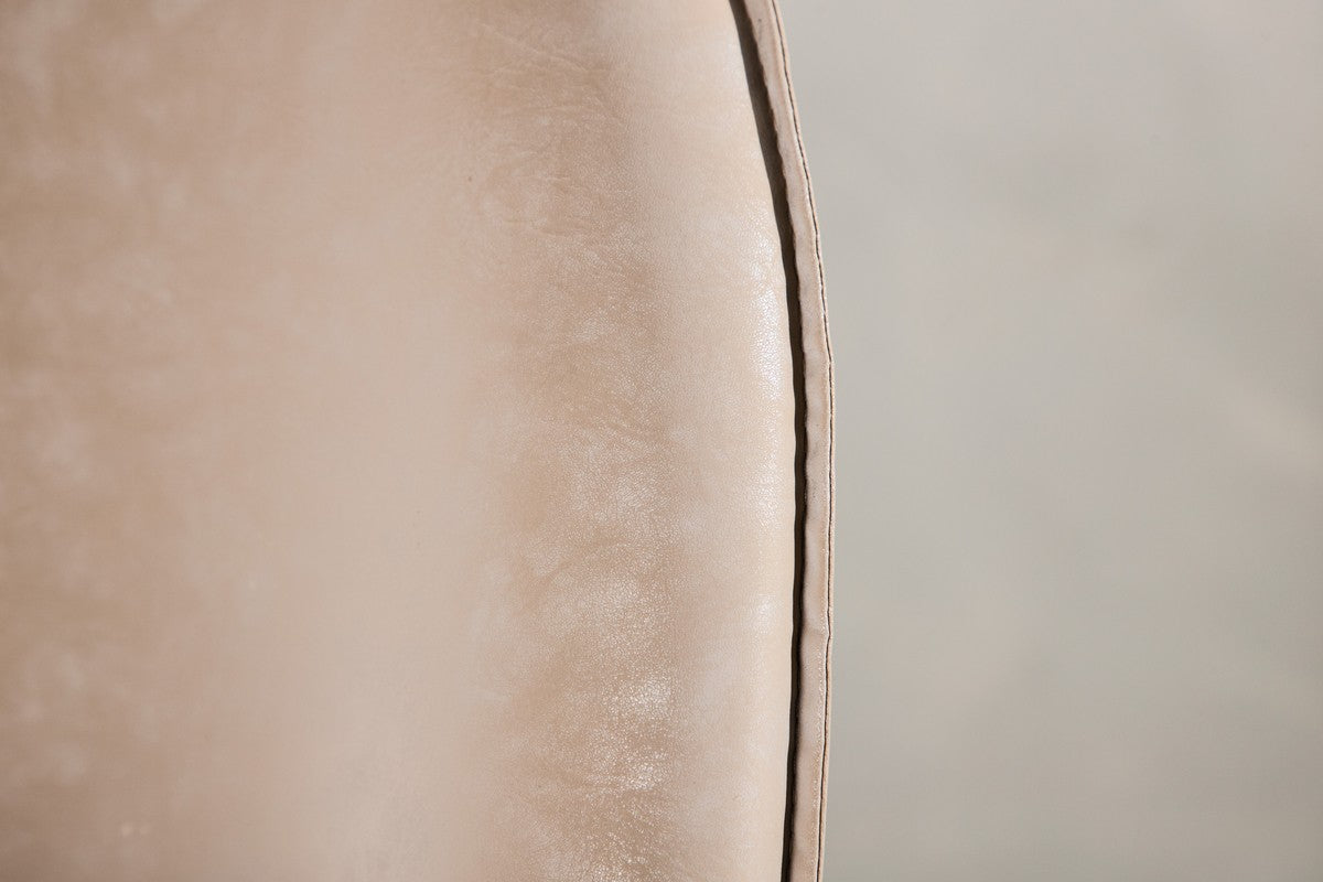 Zacht van vorm, sterk in karakter. Alina is een charmante fauteuil met een vintage knipoog. De afgeronde rugleuning en royale zitting geven haar een vriendelijke uitstraling, terwijl het beige PU-leer zorgt voor een vleugje retro chic. Door de hout-look poten en compacte afmetingen voelt Alina zich thuis in elke hoek van je interieur.