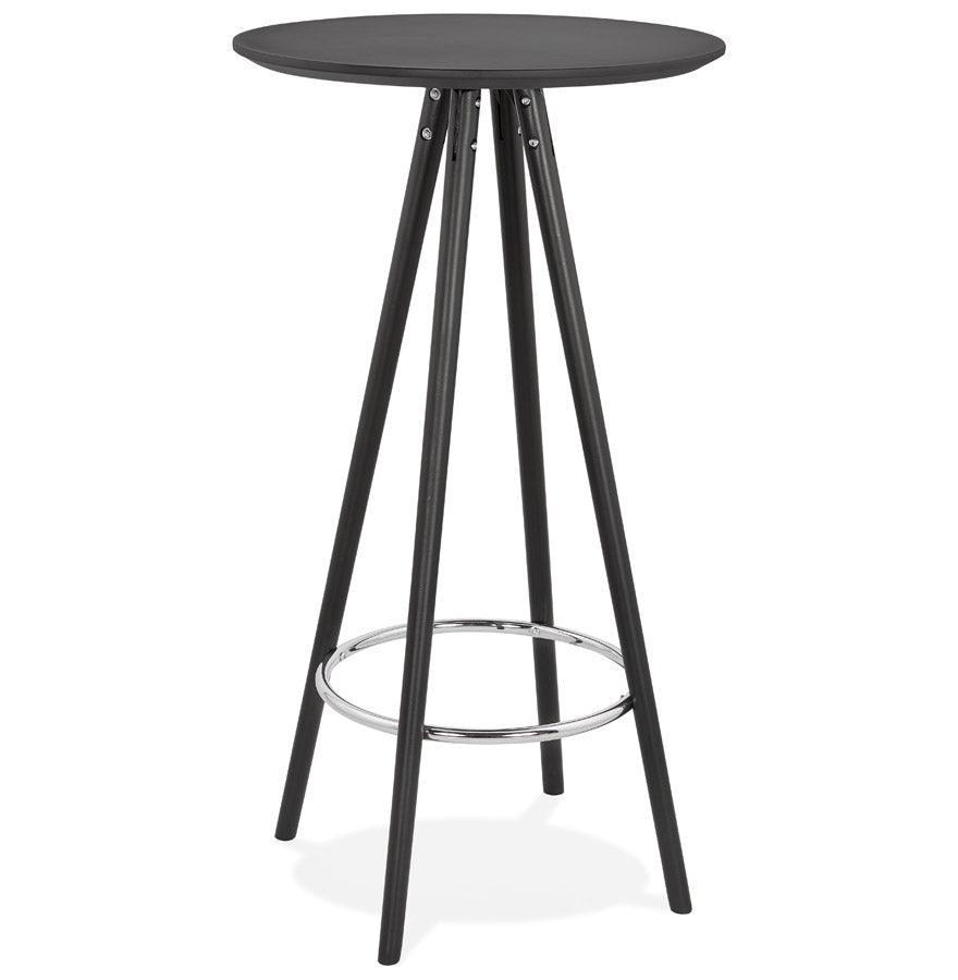 Ronde design hoge tafel met blad en 4 zwarte houten poten.