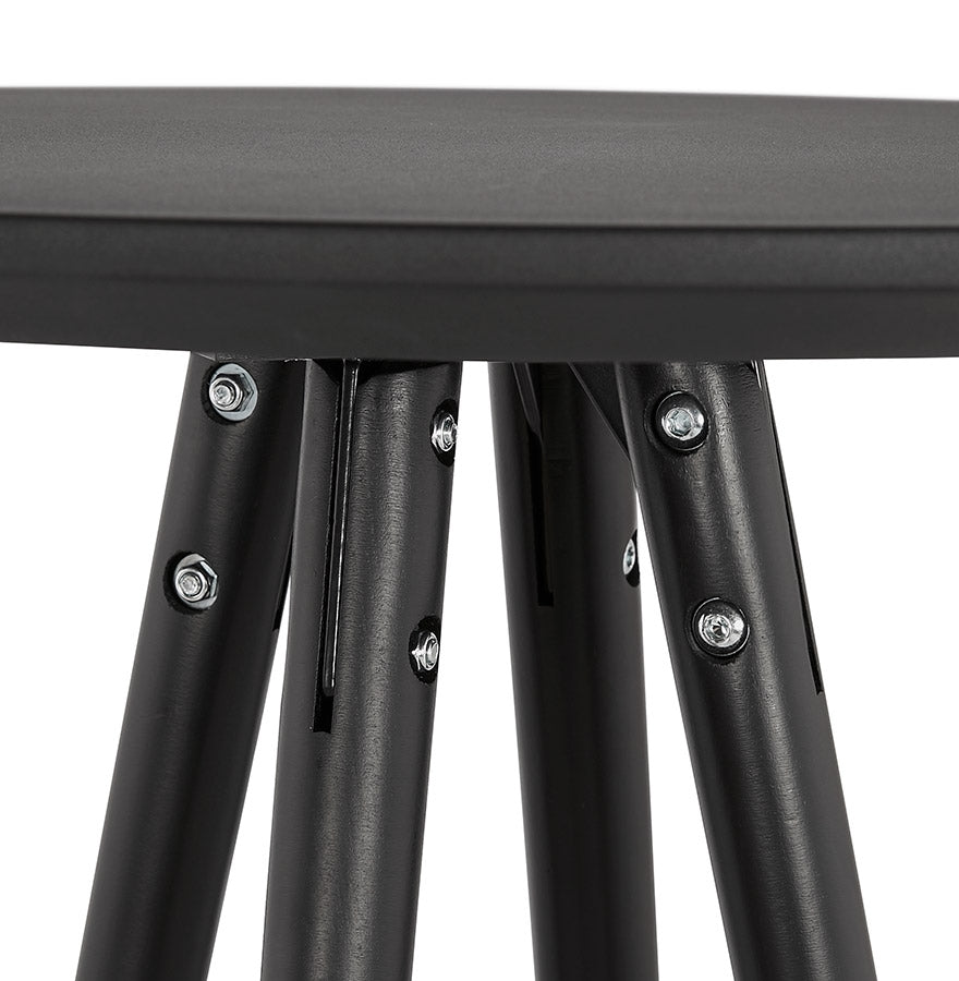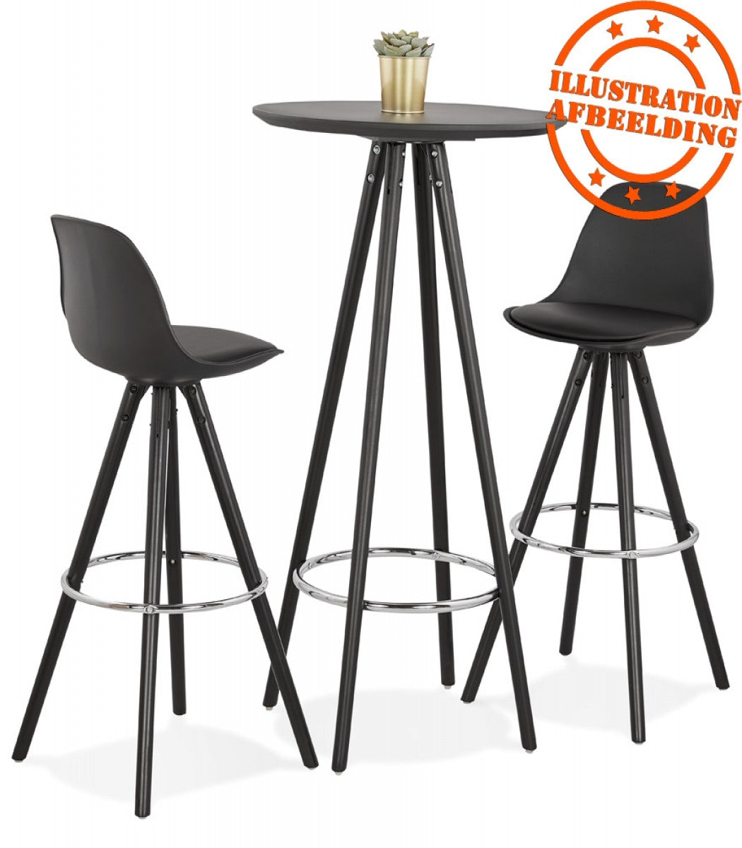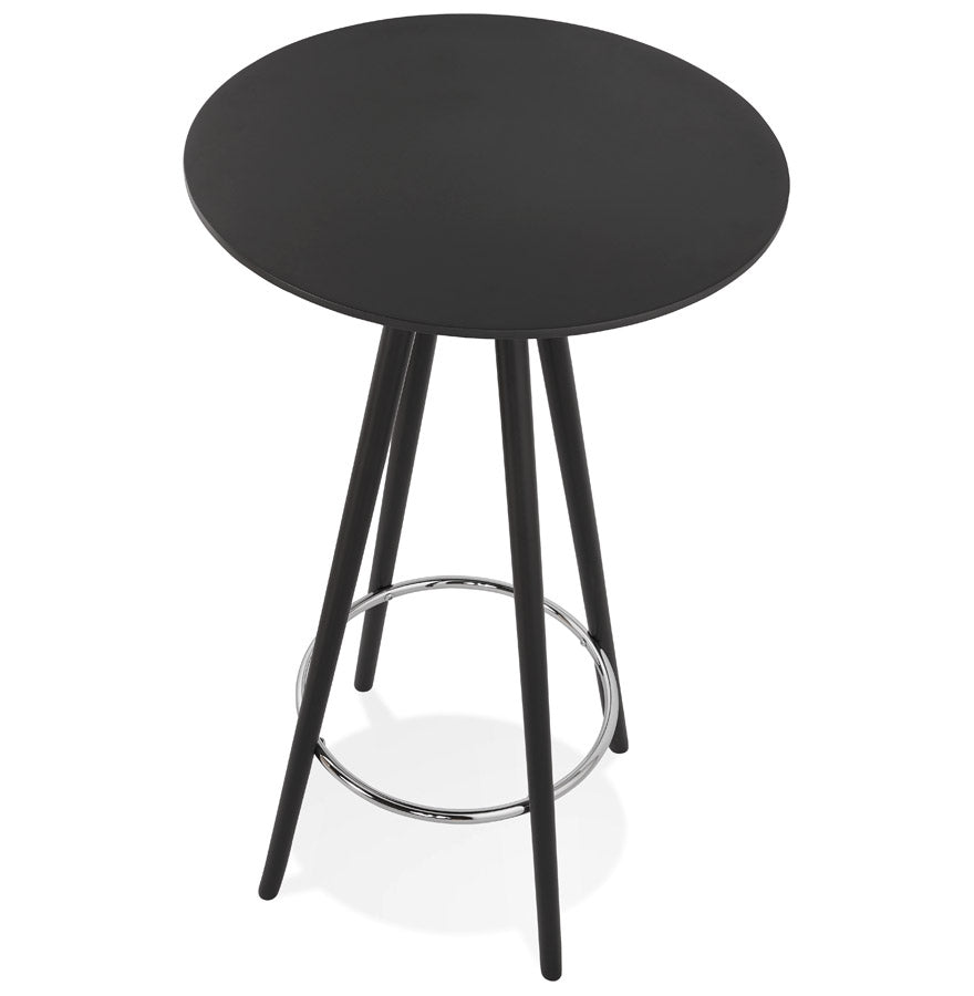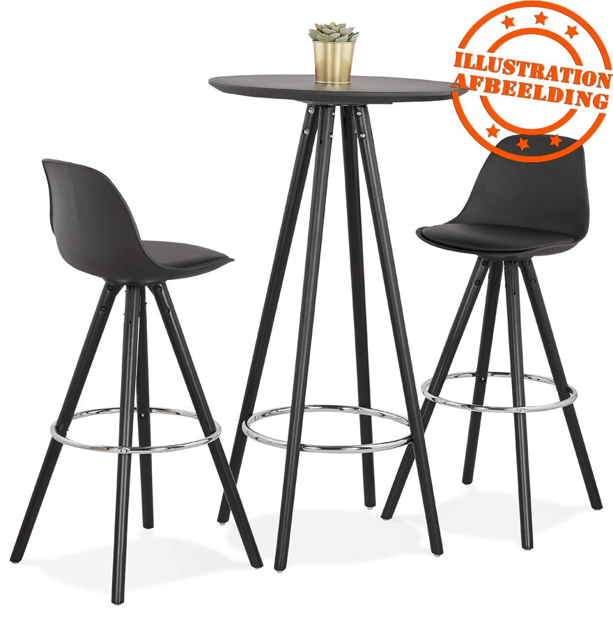 GALA ronde hoge tafel in zwart hout - Designer hoge tafel Wil je een design en functionele toets in je interieur? Val voor de statafel GALA ! Het ronde zwarte blad en het elegante zwarte houten onderstel passen perfect in een moderne keuken, een trendy bar of zelfs tijdens professionele evenementen. Veelzijdig en praktisch , de statafel GALA past zich aan uw behoeften aan:- Als snelle statafel voor een haastig ontbijt of een gastronomische pauze.- In een gezellige eethoek in een kleine keuken, leunend tegen een muur.- Als elegante bijzettafel tijdens uw cocktails en evenementen. Het ronde blad met een diameter van 60 cm biedt comfortabele ruimte voor 2 personen. De verchroomde voetsteun zorgt voor perfecte stabiliteit en voegt een vleugje originaliteit toe. Het kleine extraatje? Combineer hem met design hoge krukken voor een harmonieus en trendy geheel. Productdetails:- Afmetingen: 60x60x110 cm- Materialen: Zwart beukenhout, zwart gepoedercoat MDF- Zorgvuldige afwerking: afgeschuinde uiteinden van het tafelblad, verchroomde metalen voetsteun, verstelbare glijders.- Eenvoudige montage De statafel GALA is de perfecte alliantie tussen design, functionaliteit en gezelligheid !