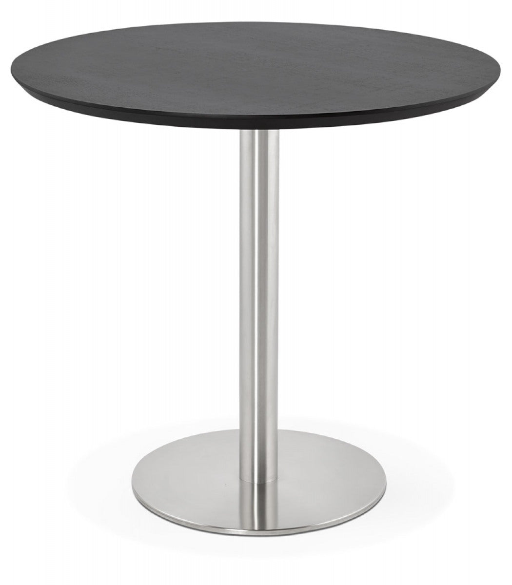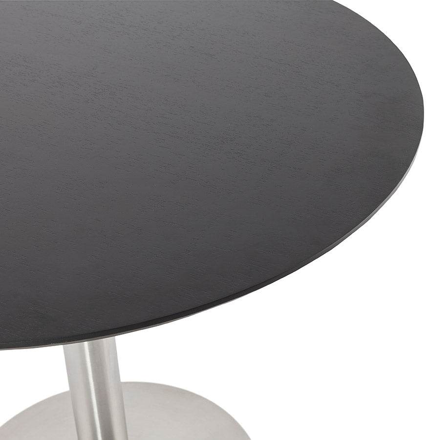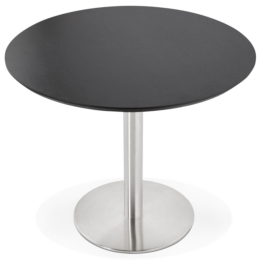 INDIANA zwarte ronde tafel Ø 90 cm - Industriële charme voor uw maaltijden en uw werk Breng een vleugje industriële elegantie in uw interieur met de ronde tafel INDIANA . Het matzwarte blad met een diameter van 90 cm past perfect bij de centrale poot van geborsteld staal, waardoor een harmonieus en modern contrast ontstaat. Veelzijdig en praktisch , past perfect in verschillende ruimtes:- Keuken: Ideaal voor gezellige maaltijden voor maximaal 4 personen.- Kantoor: Biedt een comfortabele en stijlvolle werkruimte.- Restaurant: Het strakke design en de robuustheid maken hem tot een geweldige bondgenoot voor horecaprofessionals. Comfortabel en stabiel: De INDIANA tafel heeft verstelbare glijders onder de voet voor perfecte stabiliteit, zelfs op oneffen vloeren. Het zwarte, met essen afgewerkte MDF-blad zorgt voor een grote weerstand tegen krassen en dagelijkse slijtage. Eenvoudig te monteren: De montage van het blad aan de voet is snel gedaan met behulp van zelfborende houtschroeven. Technische eigenschappen :- Doorsnede: 90 cm- Hoogte: 75 cm- Materialen: MDF blad met zwarte essen afwerking, geborstelde stalen poot- Ronde vorm- Zwarte kleur- Gebruik: Binnen- Stijl: Industrieel Kies voor de ronde tafel INDIANA en trakteer uzelf op een design- en functioneel meubelstuk dat zich aan al uw behoeften zal aanpassen!