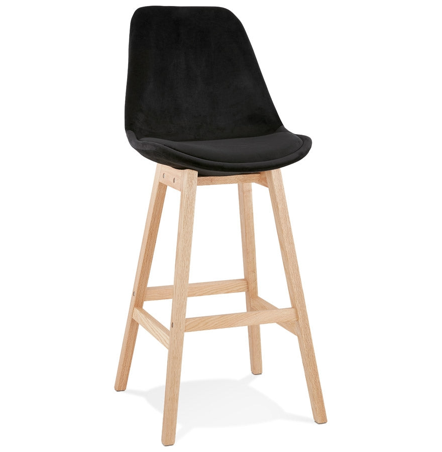 Barkruk met een zithoogte van 75 cm in zwart fluweel, geschikt voor zowel professionals als particulieren.