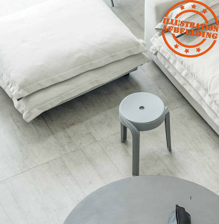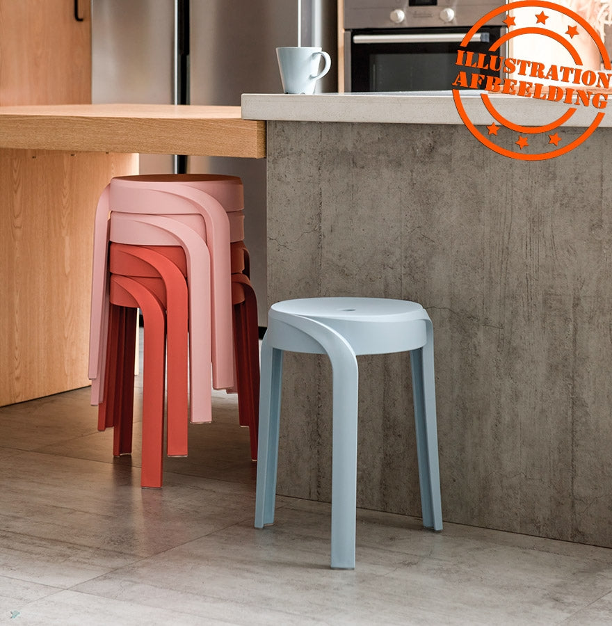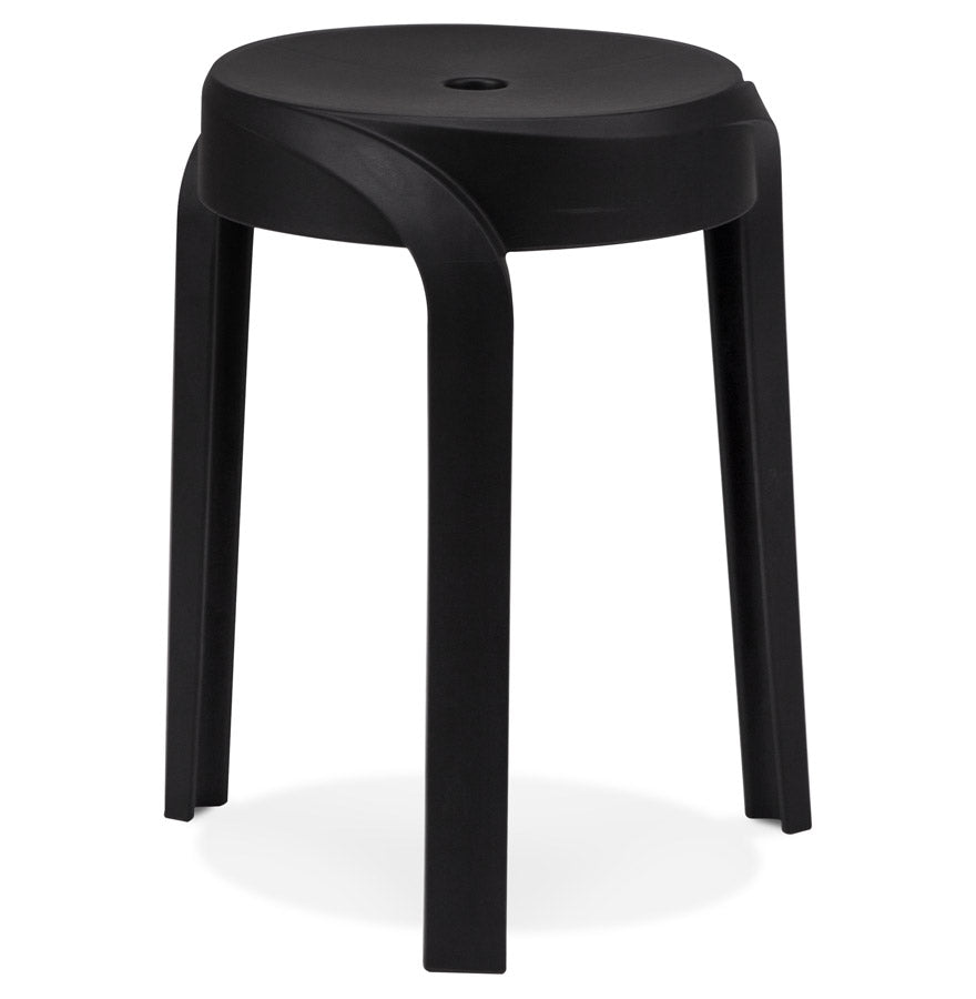 De lage stapelbare kruk 'POMPA' van zwart plastic past gemakkelijk in uw ruimte voor een vleugje moderniteit.