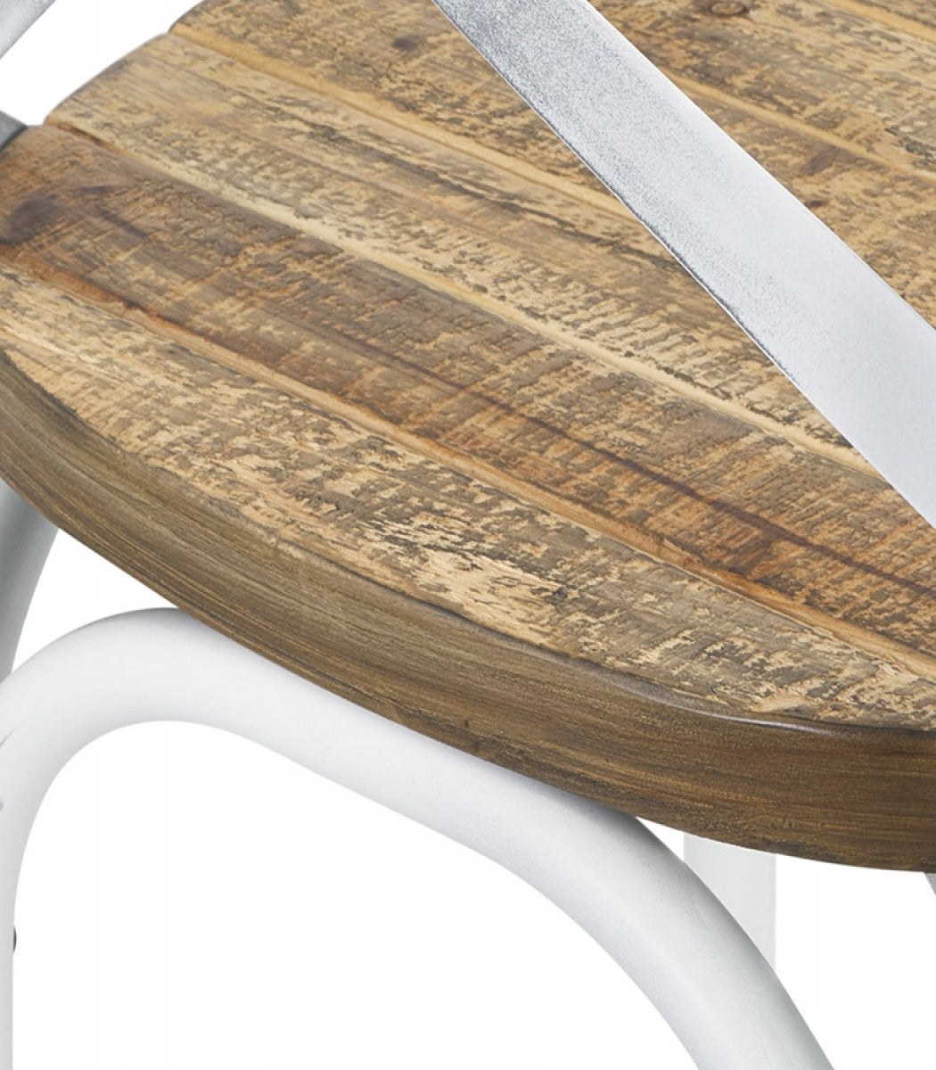 Ideaal voor rustieke interieurs maakt de Ranch keukenstoel indruk met zijn fusie van moderne materialen en de authenticiteit van hout. Deze ontwerperstoel is een geweldige toevoeging aan de keuken maar werkt goed in elke kamer van je huis. Het unieke ontwerp heeft wit metalen poten die elegant een walnoot houten zitting en een bijpassende mini-rug omcirkelen.