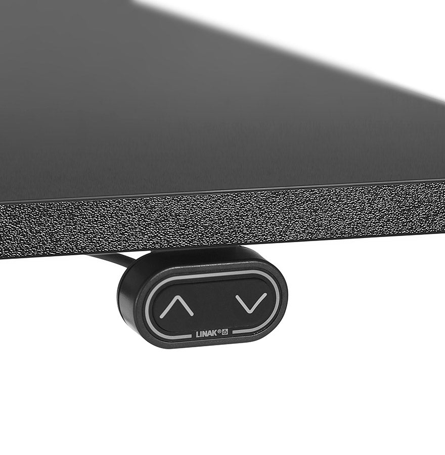 Volledig gemotoriseerd zwart bureau: de hoogteverstelling gebeurt elektronisch via een digitale box die onder het bureau is geplaatst.
