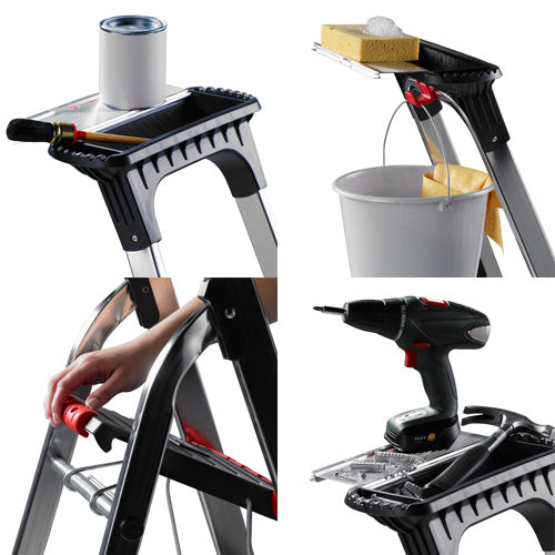 Goede kwaliteit De Double Decker is gemaakt van stevig aluminium en voorzien van diverse accessoires zoals een gereedschapshouder, emmerhaak en schroevenbakje. De trap voldoet aan alle gestelde veiligheidseisen en is eenvoudig en veilig te gebruiken: