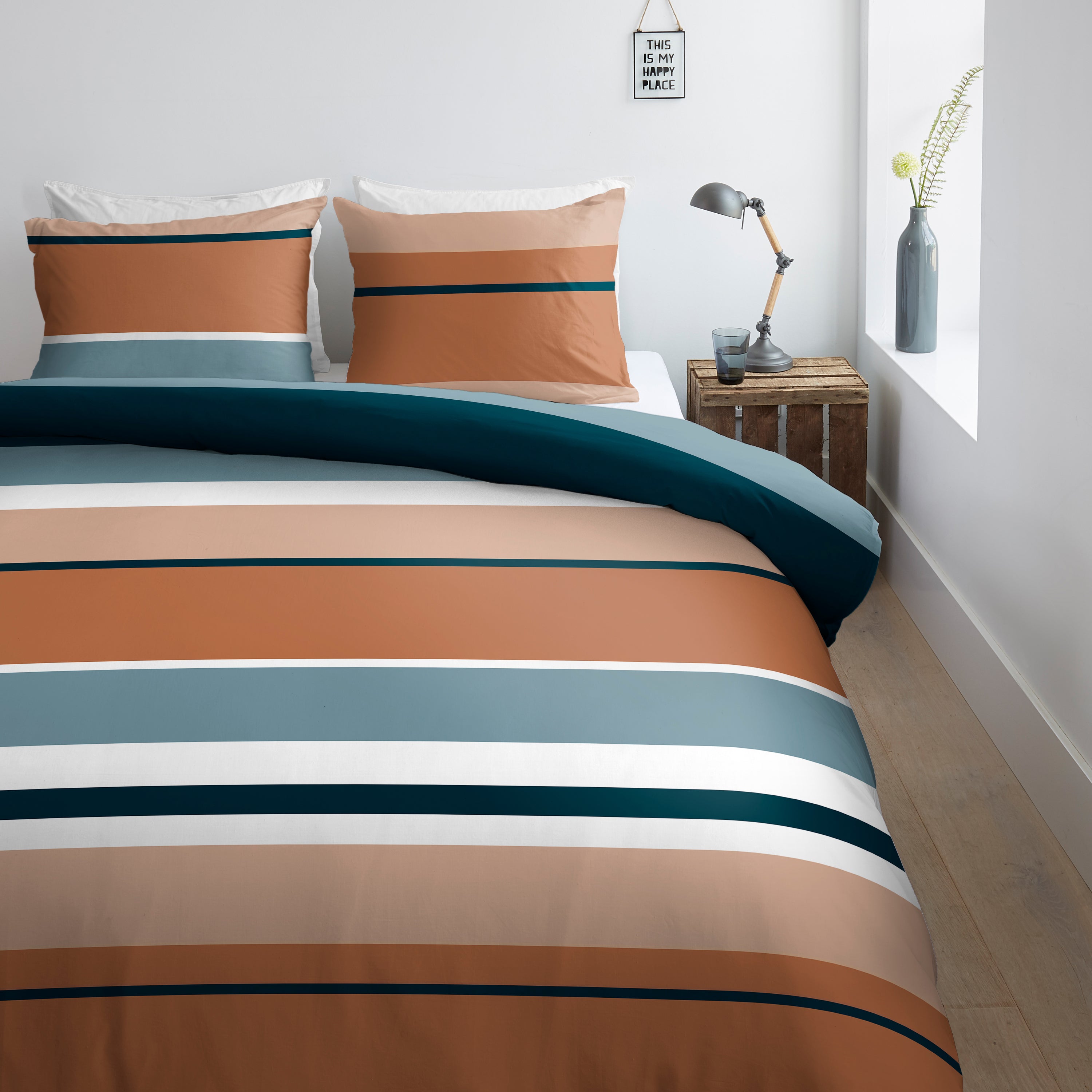 - Dit overtrek past goed in een trendy slaapkamer
