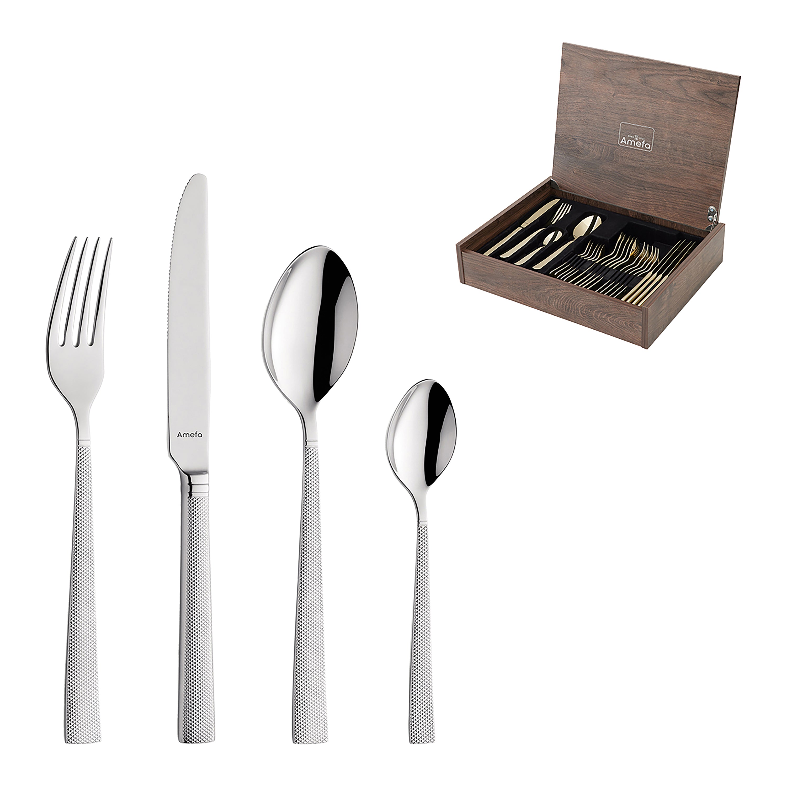 • 6 Tafelmessen • 6 Tafelvorken • 6 Tafellepels • 6 Koffielepels