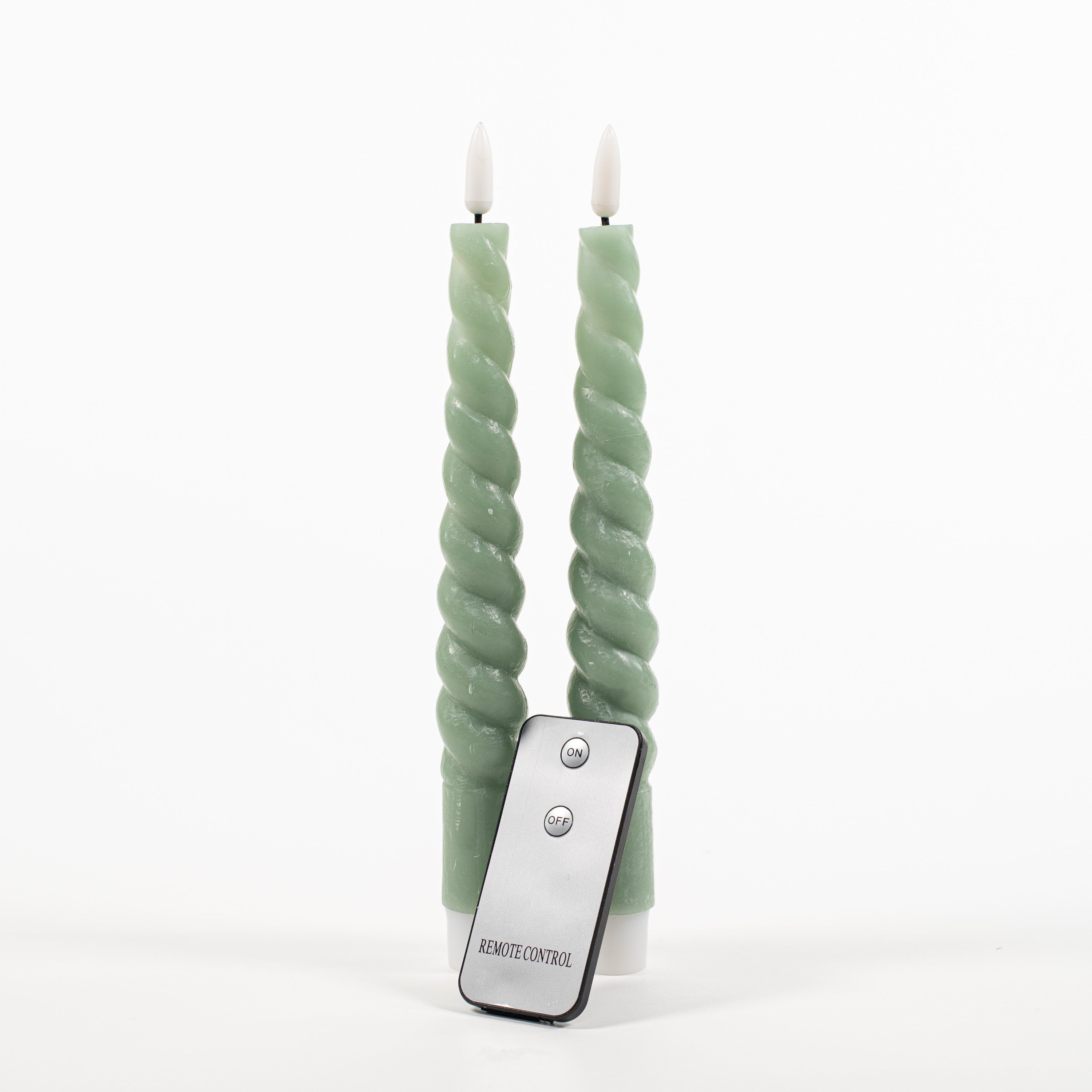 Anna Collection LED swirl dinerkaarsen - 2x st - jade groen - 23 cm