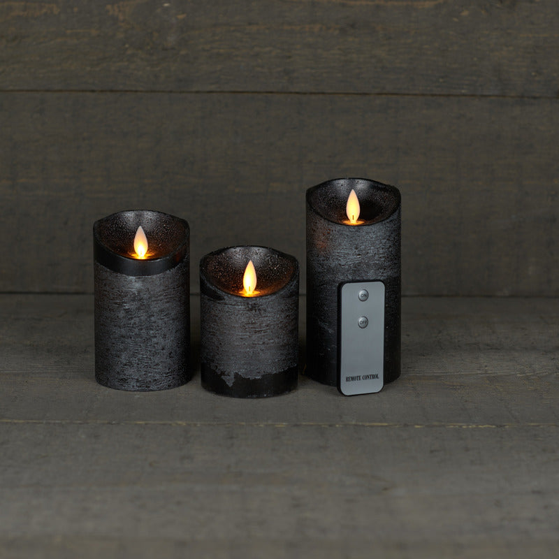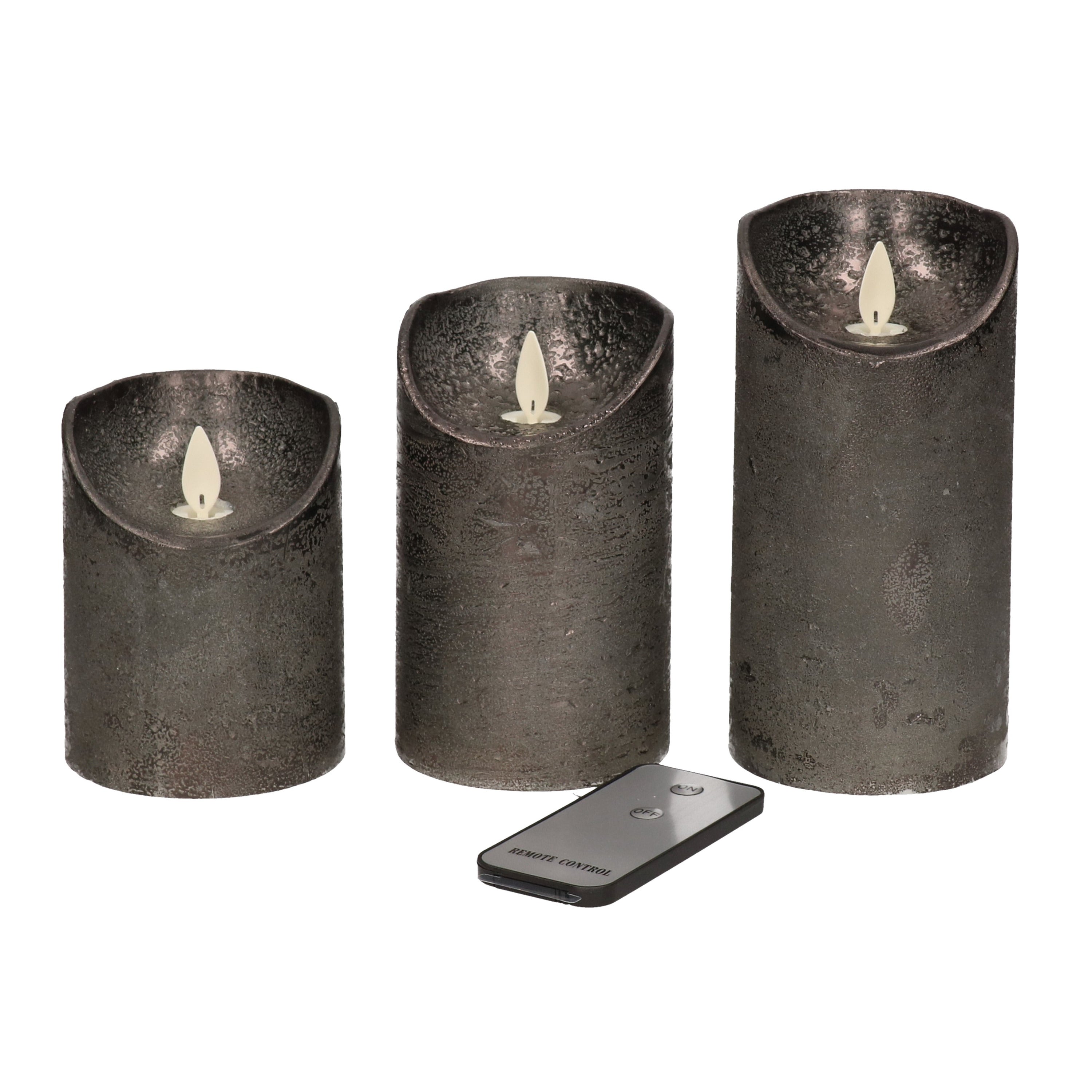 Anna's Collection Stompkaarsen - 3x - antraciet grijs - LED