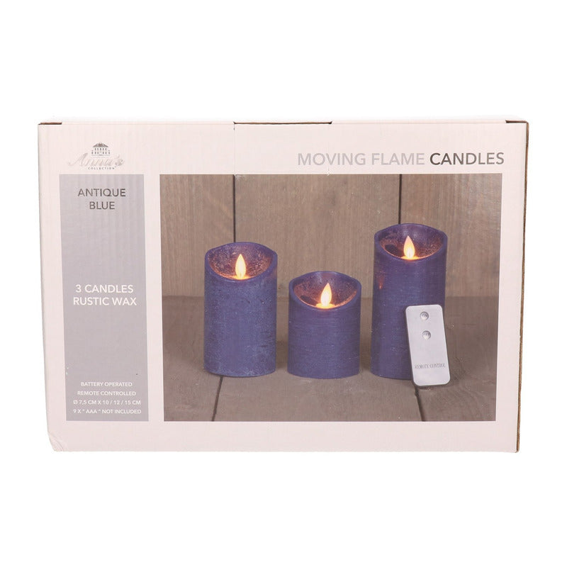 Anna's Collection Stompkaarsen - 3x - donkerblauw - LED kaarsen