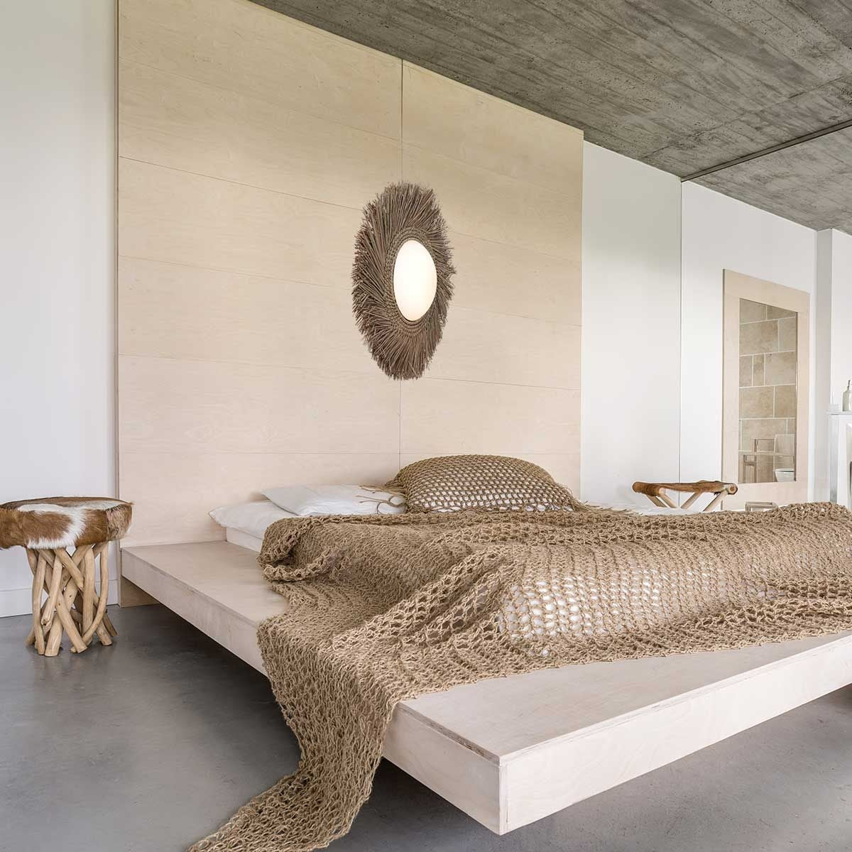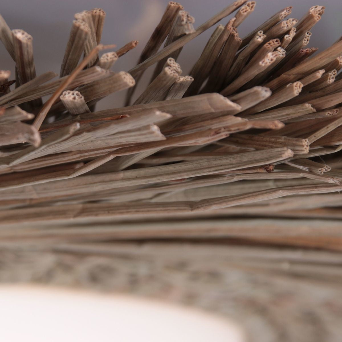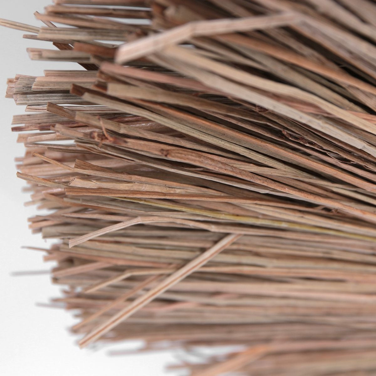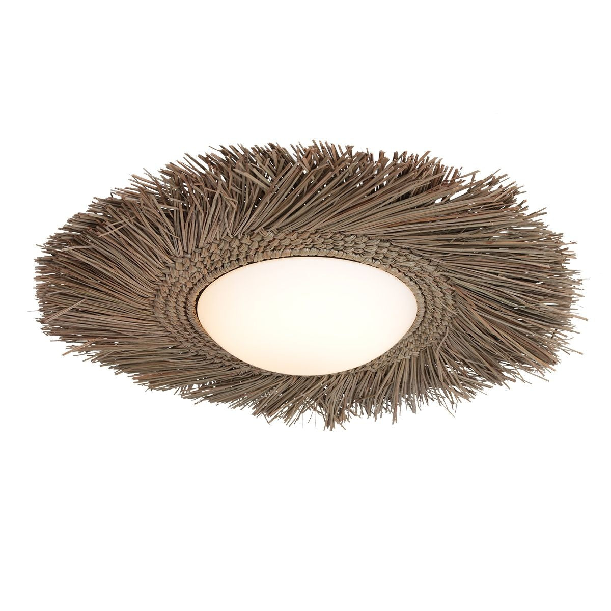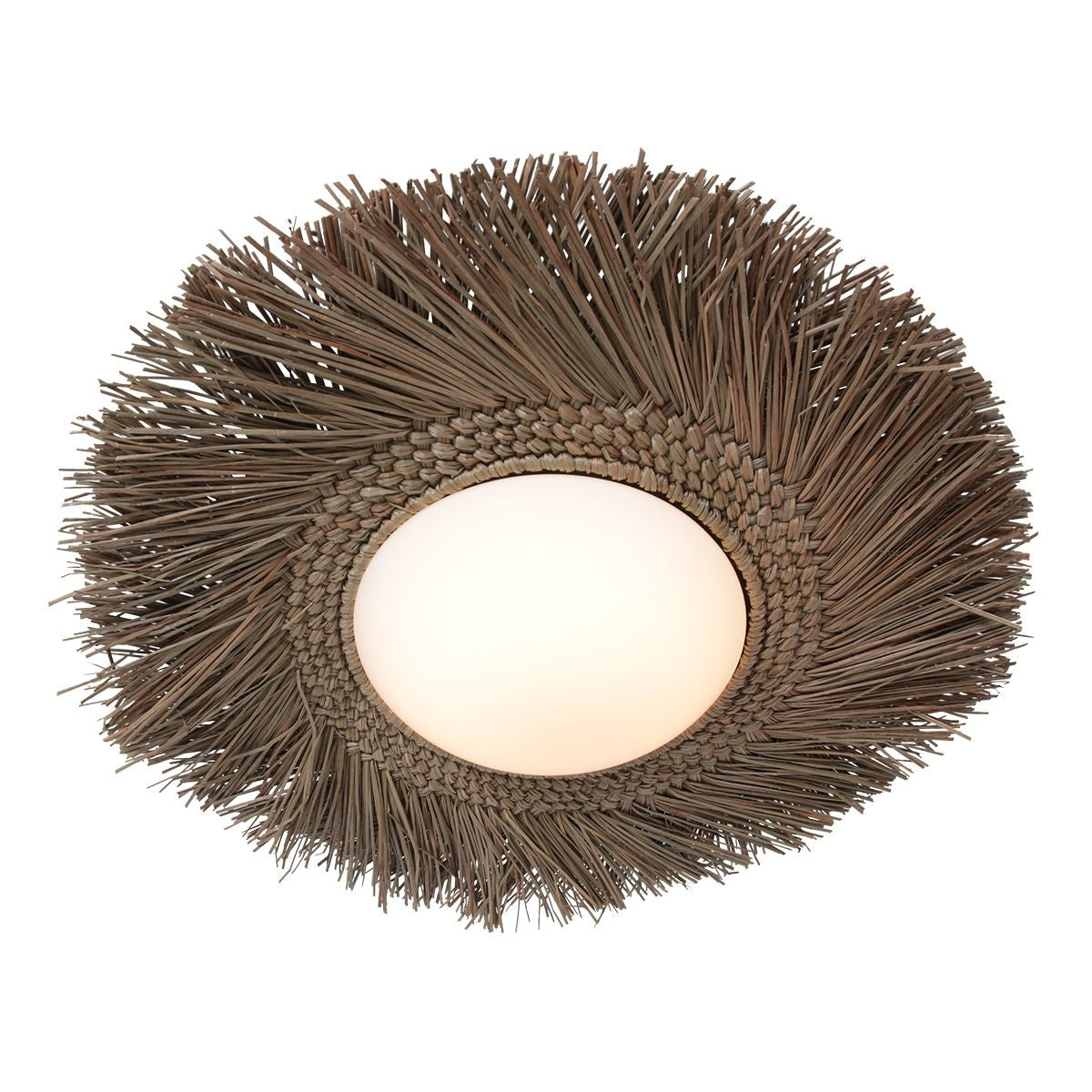 Een uniek kunstwerk tegen het plafond of op de wand, wie wil dat nou niet? Deze Aura is gemaakt van bruin/donker beige kleurig riet en de plafondlamp is gemaakt van wit glas. Onder de glazen kap bevindt zich de ingebouwde, niet vervangbare, LED lichtbron van 18 Watt. Deze lamp geeft 1750 Lumen aan mooi warm licht (2700 Kelvin). De totale breedte is 50 cm en de hoogte is 10 cm.