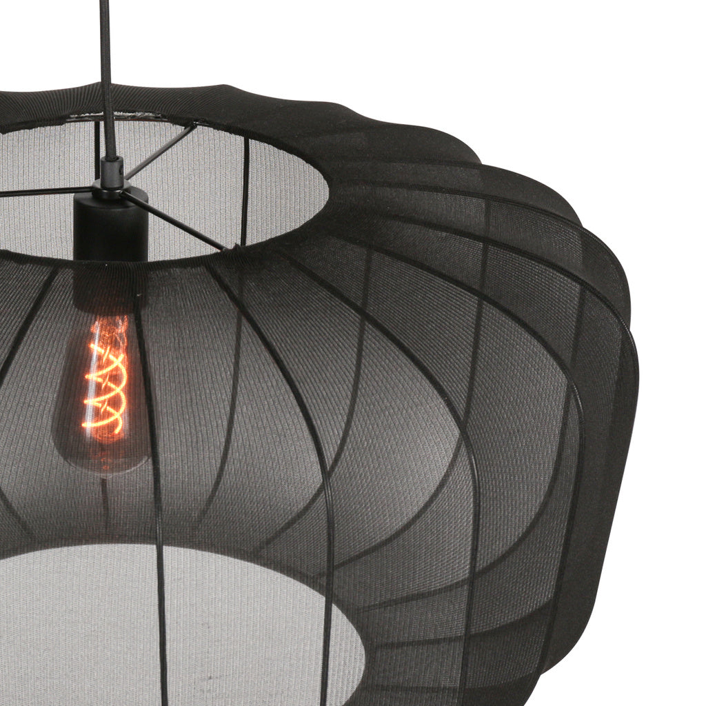 De Anne Light & Home Hanglamp Sable Zwart Linnen Ø 60 cm met een diameter van 60 centimeter en een hoogte van 30 centimeter zorgt de hanglamp Sable voor een royale lichtverspreiding, perfect om een ruimte sfeervol te verlichten.