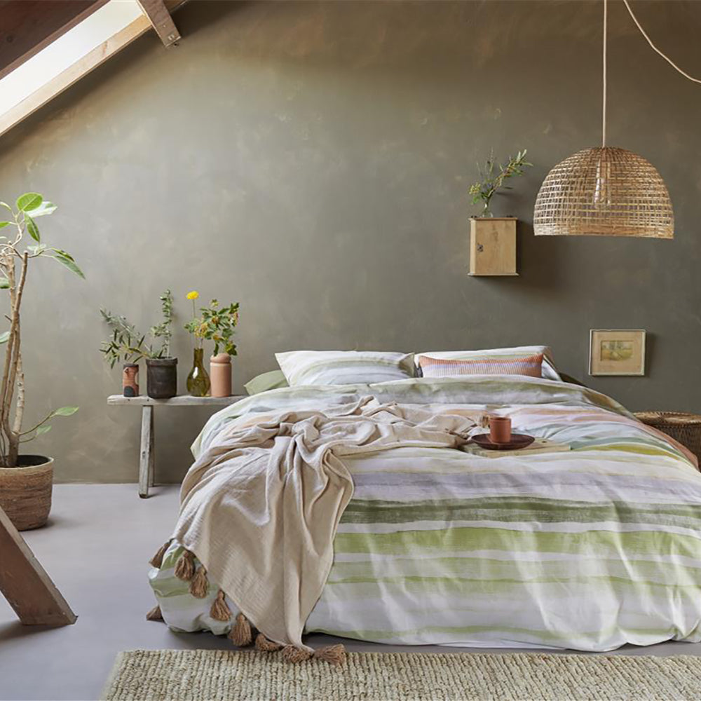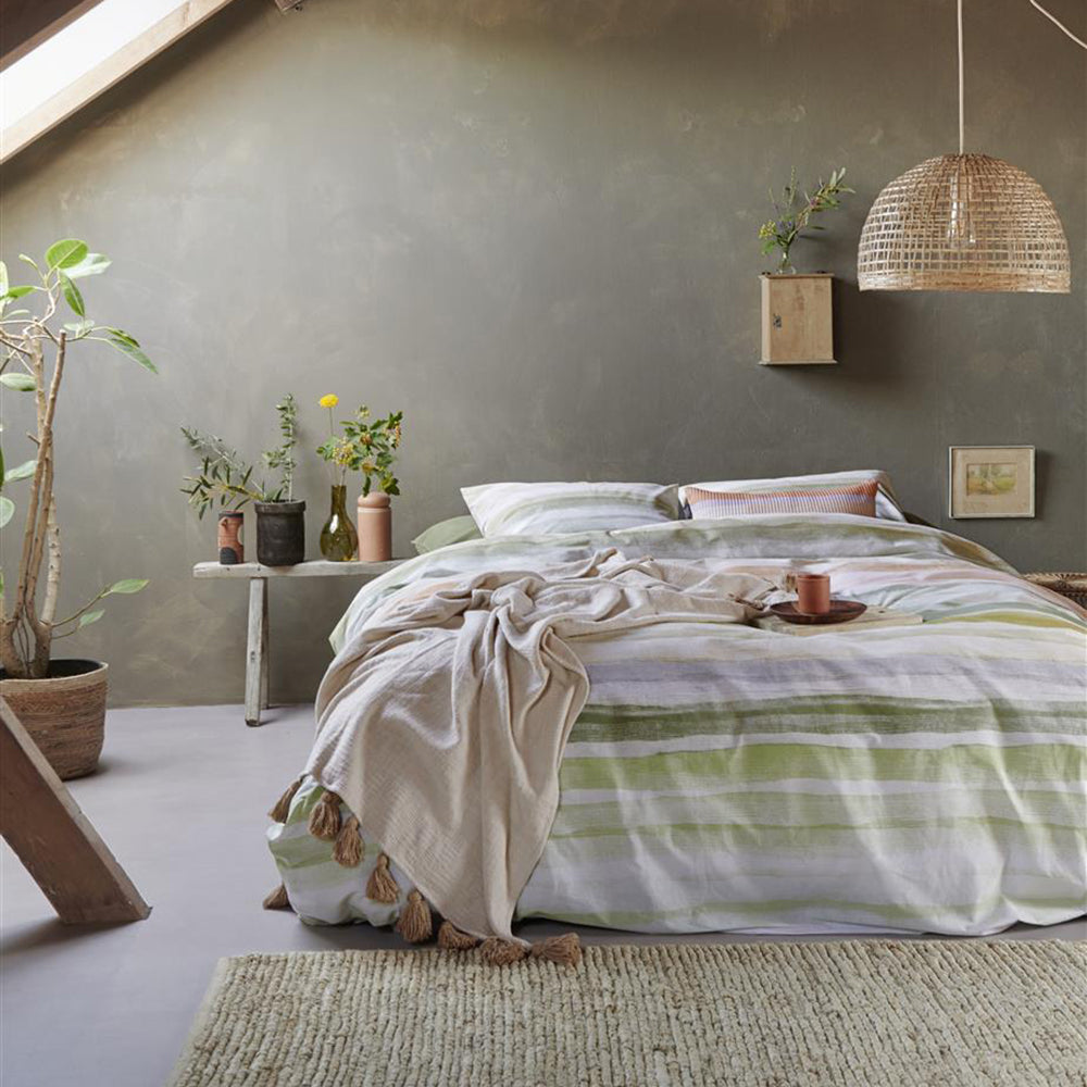 Waarom dekbedovertrek Colour Palette? Op het dekbedovertrek Colour Palette zien we een prachtige print van handgeschilderde aquarelstrepen. Verschillende lichte en donkere groentinten, grijs, wit, bruin, terra en natureltinten wisselen elkaar af. De kleuren zijn goed afgestemd en passen mooi bij elkaar. De voor- en achterzijde van het overtrek en de kussenslopen zijn hetzelfde. Dekbedovertrek Colour Palette van Ariadne at Home is verkrijgbaar in meerdere kleuren.