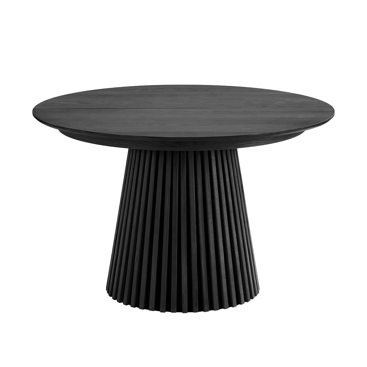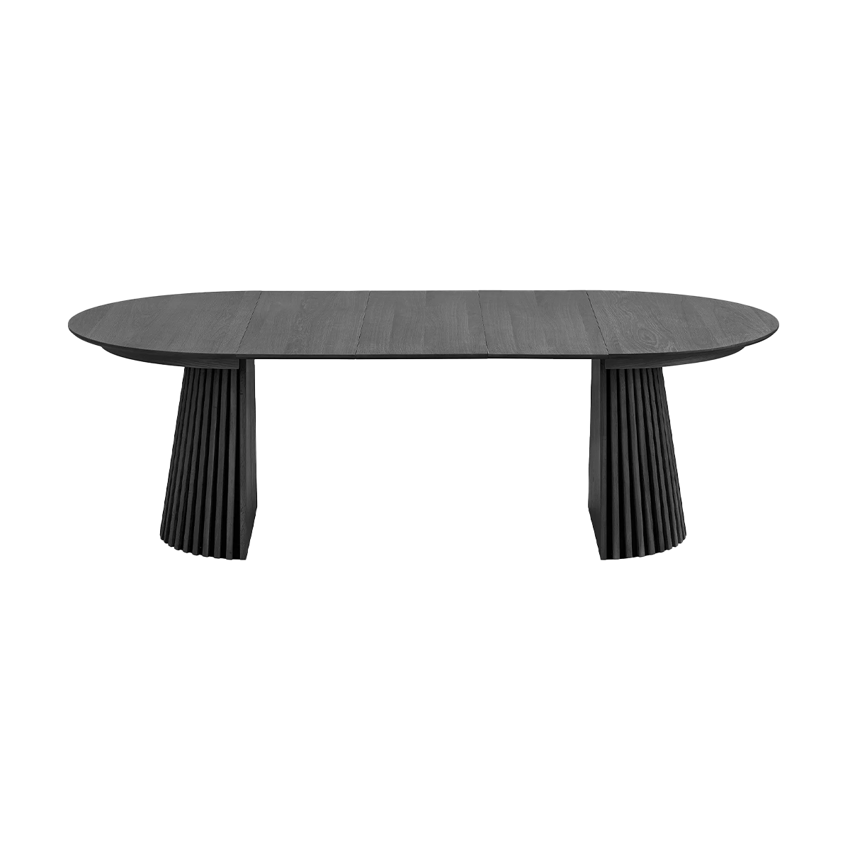 Deze tafel is lekker speels in gebruik: je begint met een ronde tafel van 120 cm en kan hem gemakkelijk uitschuiven tot wel 240 cm! Hoe? Met de drie extra platen van elk 40 cm die je simpelweg in het midden legt – zo blijven de stoere, half ronde poten aan de uiteinden. De tafel is voorzien van een eikenhout fineer laag. Of je nu voor de lichte of donkere kleur kiest, deze tafel voegt altijd een warme, natuurlijke sfeer toe aan je interieur. Plus, de poten zijn een kunstwerk op zich, met verticale houten latjes die de Alko een moderne, minimalistische look geven. Of je nu met z'n tweeën aan de maaltijd zit of je gasten uitnodigt, de Alko past zich helemaal aan jouw behoeftes aan. Perfect voor gezellige etentjes.