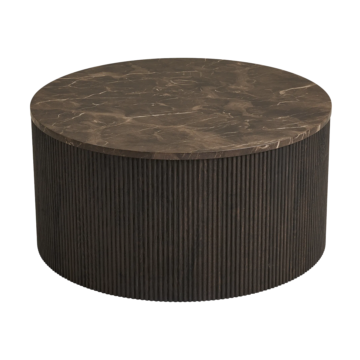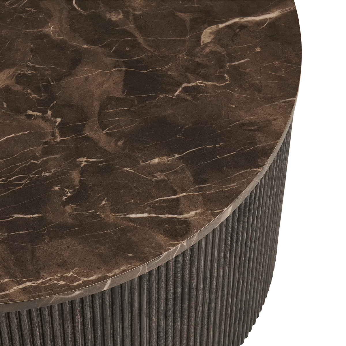 Het ronde tafelblad in donkerbruin marmer geeft een chique en unieke uitstraling, terwijl de cilindervormige voet met verticale houten latjes zorgt voor een moderne twist. Het samenspel van materialen maakt Babette tot een echte eyecatcher in de woonkamer. Door het royale formaat biedt de Babette salontafel genoeg ruimte voor al je dagelijkse essentials: van koffiekopjes en snacks tot een mooi bloemstuk of stapel boeken. Zo is hij niet alleen elegant, maar ook bijzonder praktisch en tijdloos.