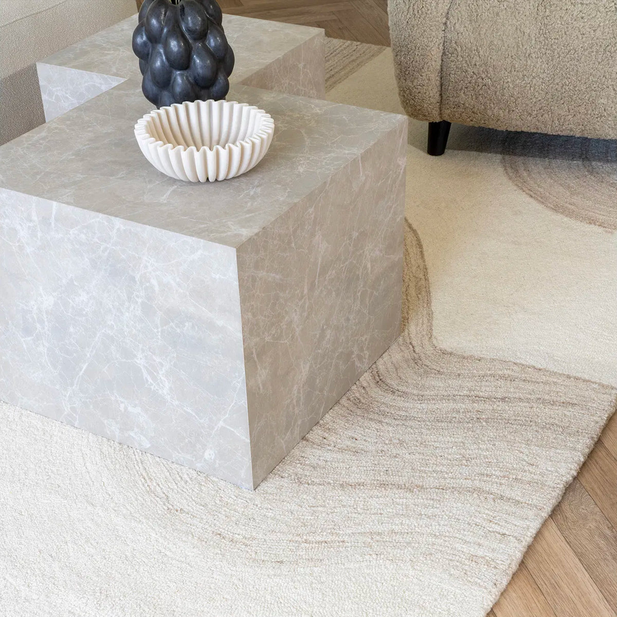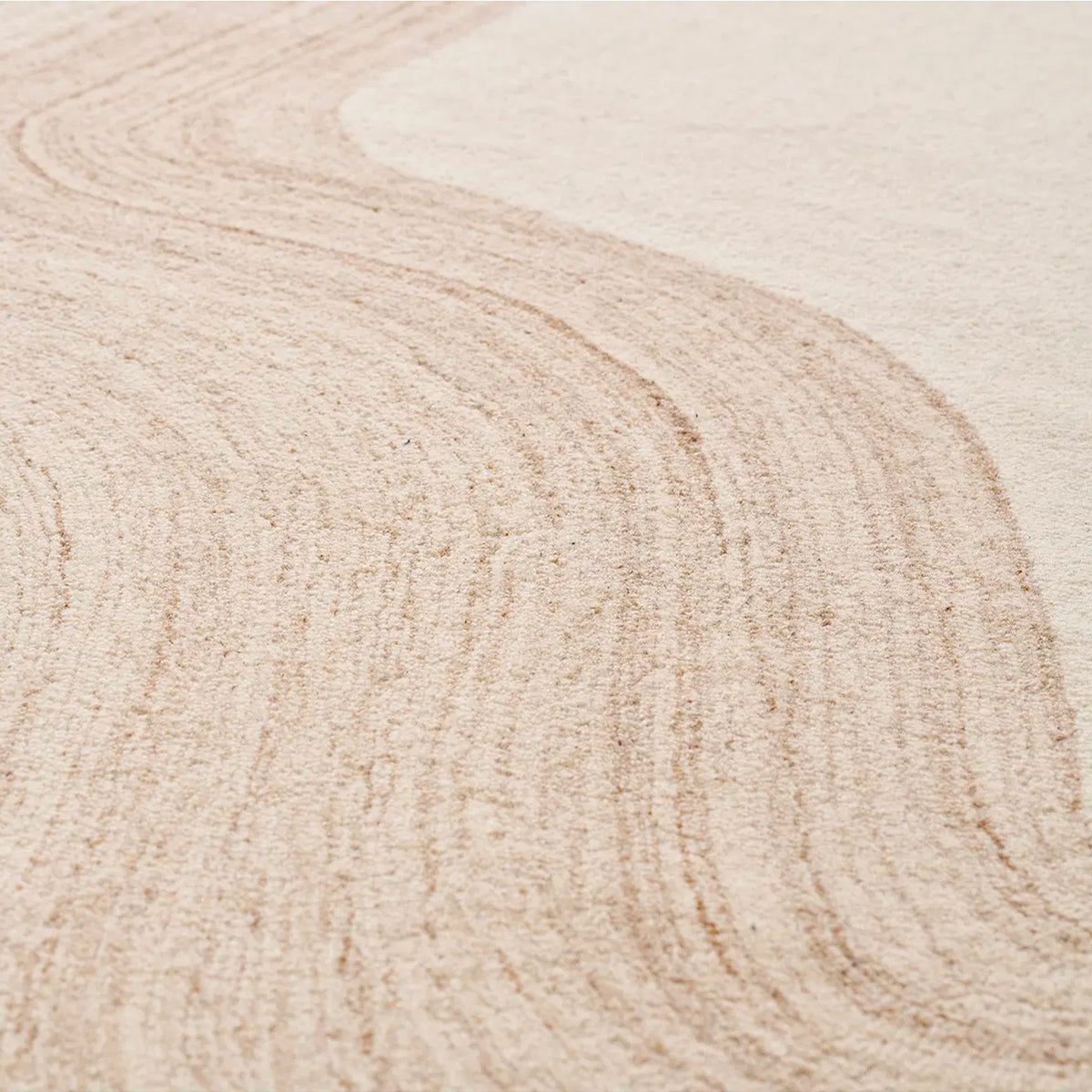 Dit handgetufte wollen vloerkleed is een perfecte mix van stijl, kwaliteit en comfort. De zachte kleurencombinatie van beige en ivoor, gecombineerd met een unieke golfstructuur, maakt het een subtiele blikvanger in iedere ruimte. Het kleed straalt rust en eenvoud uit, wat het ideaal maakt voor een Japandi-interieur, maar het past ook uitstekend bij Scandinavische, minimalistische of moderne woonstijlen. Daarnaast is het rechthoekige vloerkleed gemaakt van 100% wol en heeft daardoor een lange levensduur. Met dit vloerkleed geef je jouw woonkamer een uitnodigende uitstraling en een vleugje tijdloze elegantie.