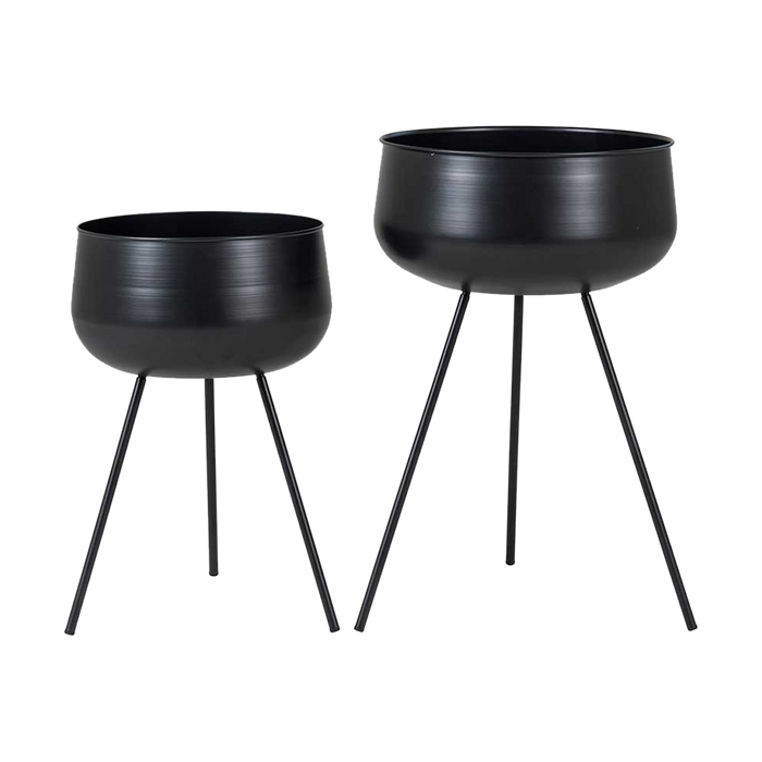 Je kunt deze twee unieke potten natuurlijk speels naast elkaar zetten, maar ook verspreid door het huis. Op de vloer naast de bank, kast of fauteuil of juist de kleinere variant boven op een tafeltje of kast. Leuk met een mooie grote kamerplant. De afmetingen van de potten zijn: Ø28 x 46 cm en Ø34 x 56 cm.